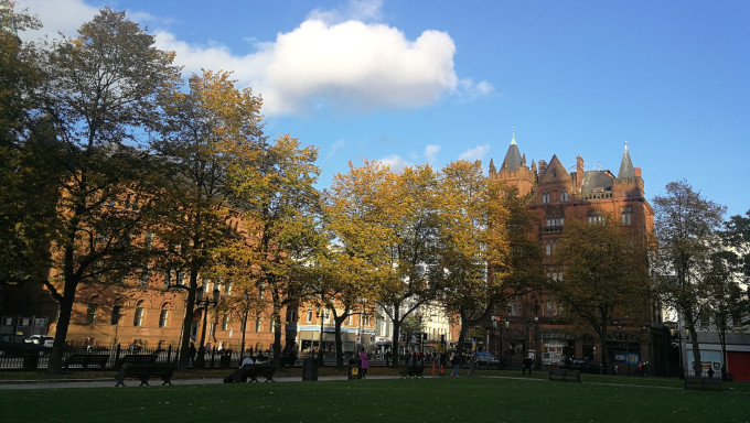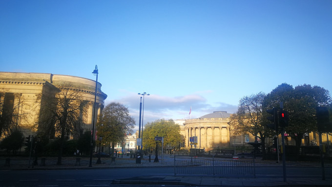 一早步行去火车站,天气真好。St John 's Gardens花园周围绕着新古典主义风格的图书馆、美术馆、博物馆、帝国剧场、圣乔治大厅(St. George's Hall & Gardens)。
