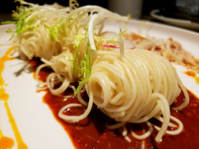 正宗的扬州早茶,一定是配一壶扑鼻芬芳的魁龙珠,再来一碟堆成小山状的烫干丝,白豆腐干切得细若牙签,用滚水烫熟,去掉豆腥味,然后酱麻油一拌,撒上虾米,最灵魂的,应当算那山尖上,一撮细若发丝的生姜丝儿。
