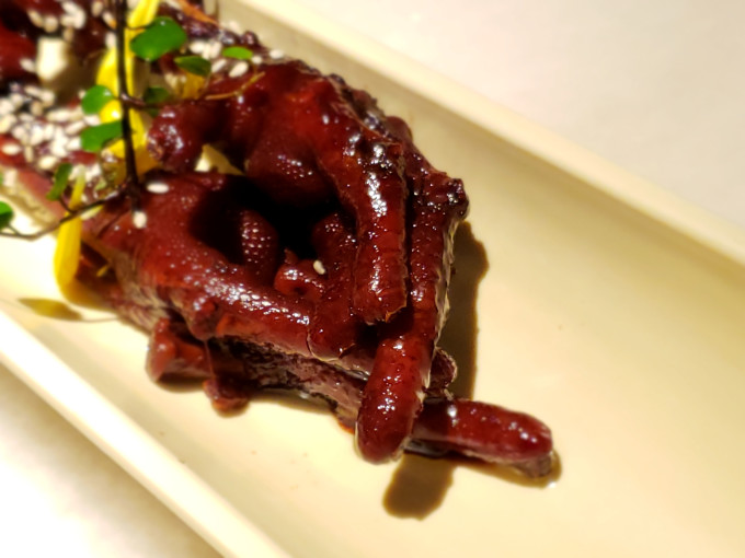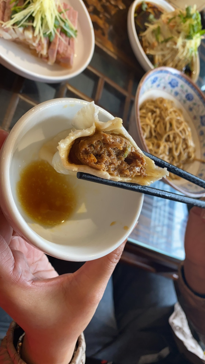 鉴于小可爱比较爱吃肉,推荐她试试水晶肴肉,肥瘦二八相间的猪前蹄肉,用硝和椒盐腌渍,再用重重的青石压板实,吃的时候,蘸一点香醋,醋碟子里,依然少不了一小撮细细的姜丝佐味,一口咬下去,口感紧实Q弹,肉质细腻微香,古人都赞是“不腻微酥香味溢,嫣红嫩冻水晶肴”。
