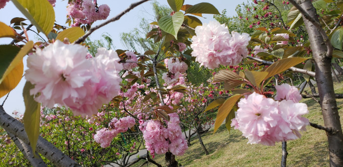 彼时,看到公园里有一大片桃花林,想着此刻正是烟花三月的季节,可以好好的赏花了,哪知道等我进去看到的,却是树上已经结出了小桃子。终究是来迟了十多天,只剩下一些依然荼蘼的挂在枝头的晚樱,不免有点“人间四月芳菲尽”的小情绪了。