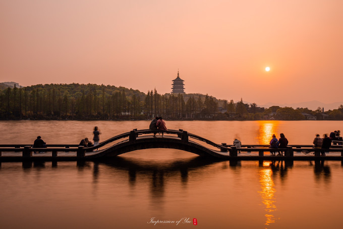 先来说说长桥公园吧,我一直觉得这是西湖最浪漫的一个地方。夕阳西下,长桥上情侣的背影,远处的雷峰塔,近处的西湖泛起波光粼粼,再搭配长桥凄美的传说。应该是最适合情侣的谈情说爱地方了。