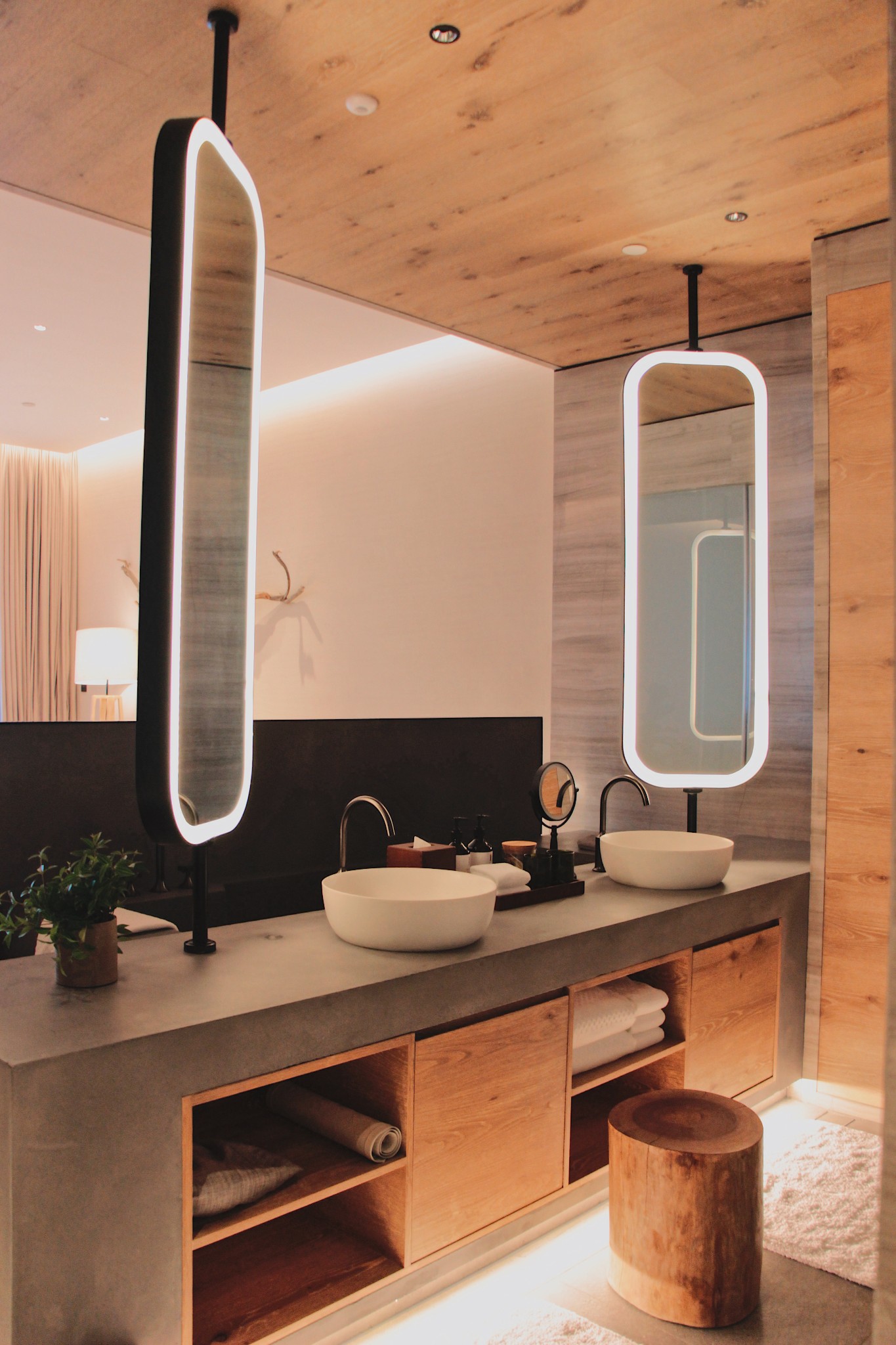 洗手台旁边的落地柜里放着两间整理好的浴袍。我不得不提一下酒店的浴袍!真的是我此生最爱的浴袍!加绒的内里和收紧的袖口!游泳完或者洗澡好穿上!真的感觉不到冷!自己仿佛披了一件貂皮大衣一般暖和!