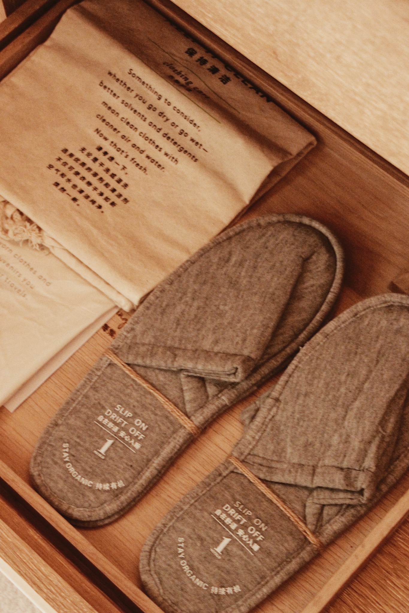 包括酒店的棉拖鞋和洗衣袋,上面都写着他们的过往曾经。
