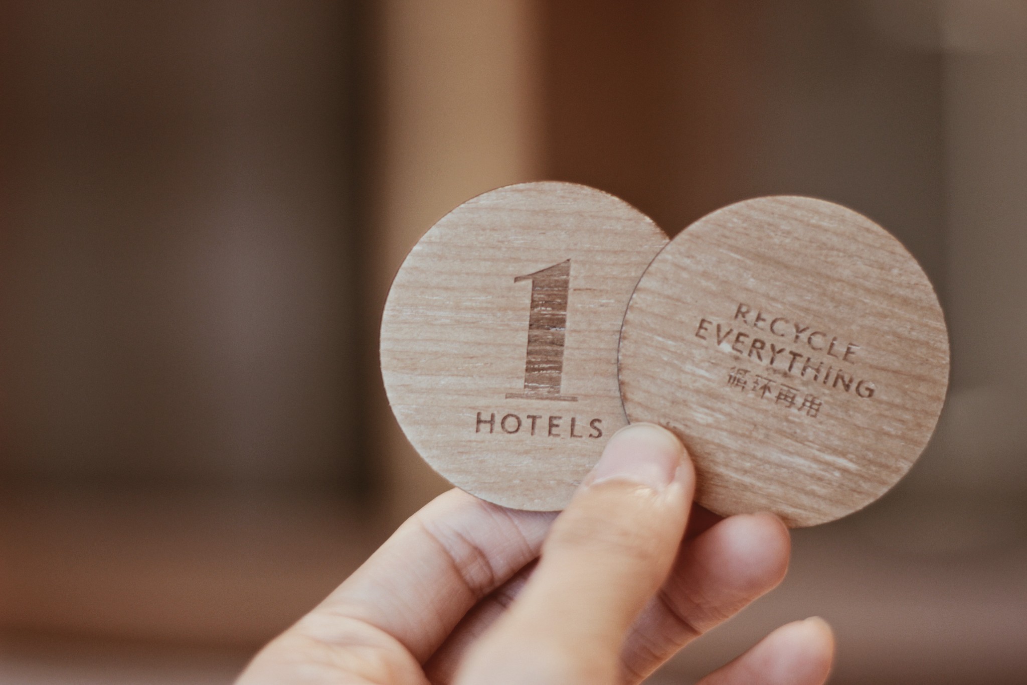 拿到酒店房卡后,竟然让我有点惊喜,圆形的小木片一改酒店房卡的模样,小木片里放着芯片,可以循环再用还有创意。