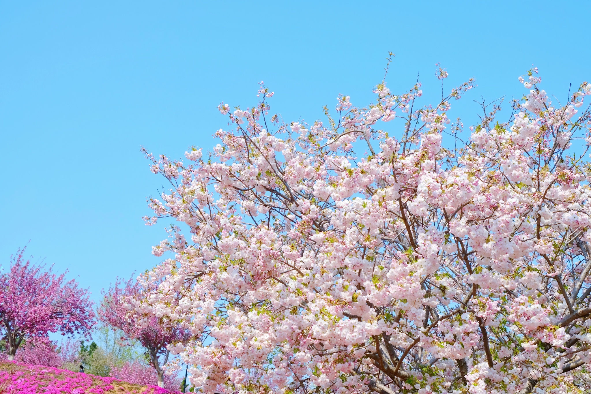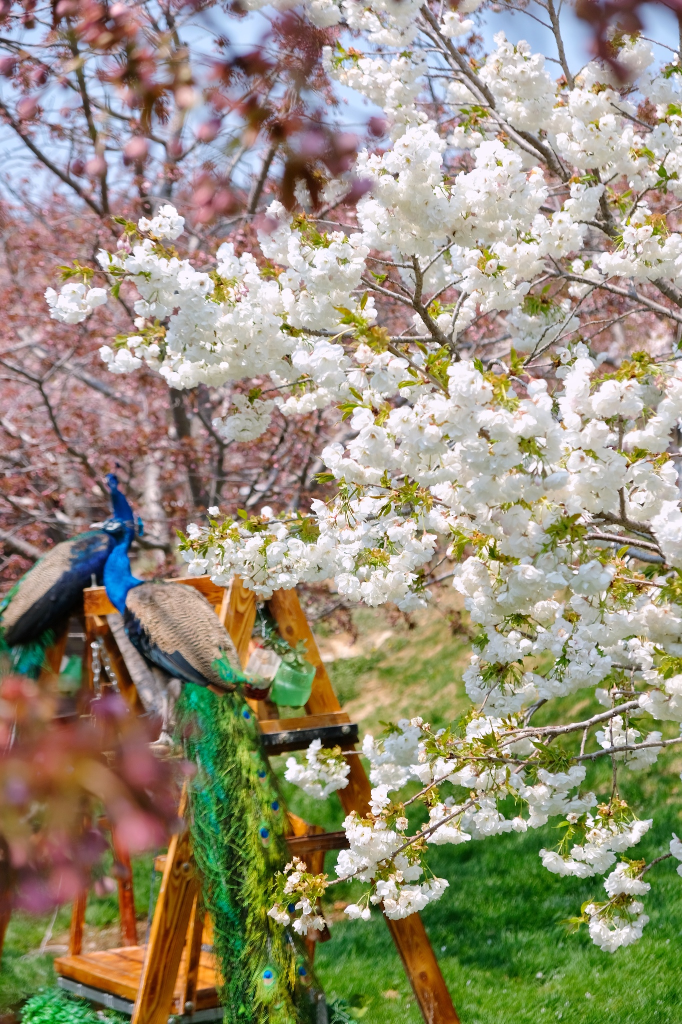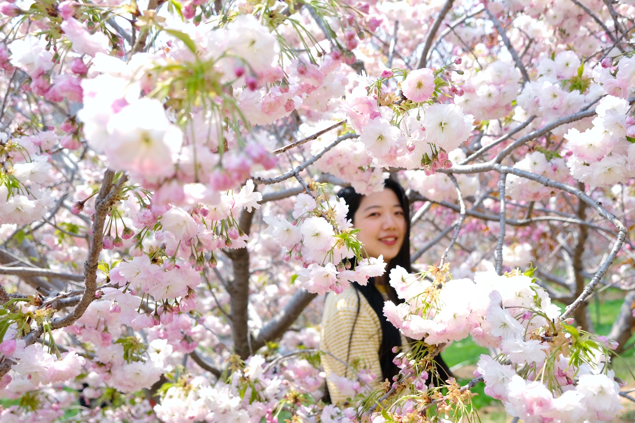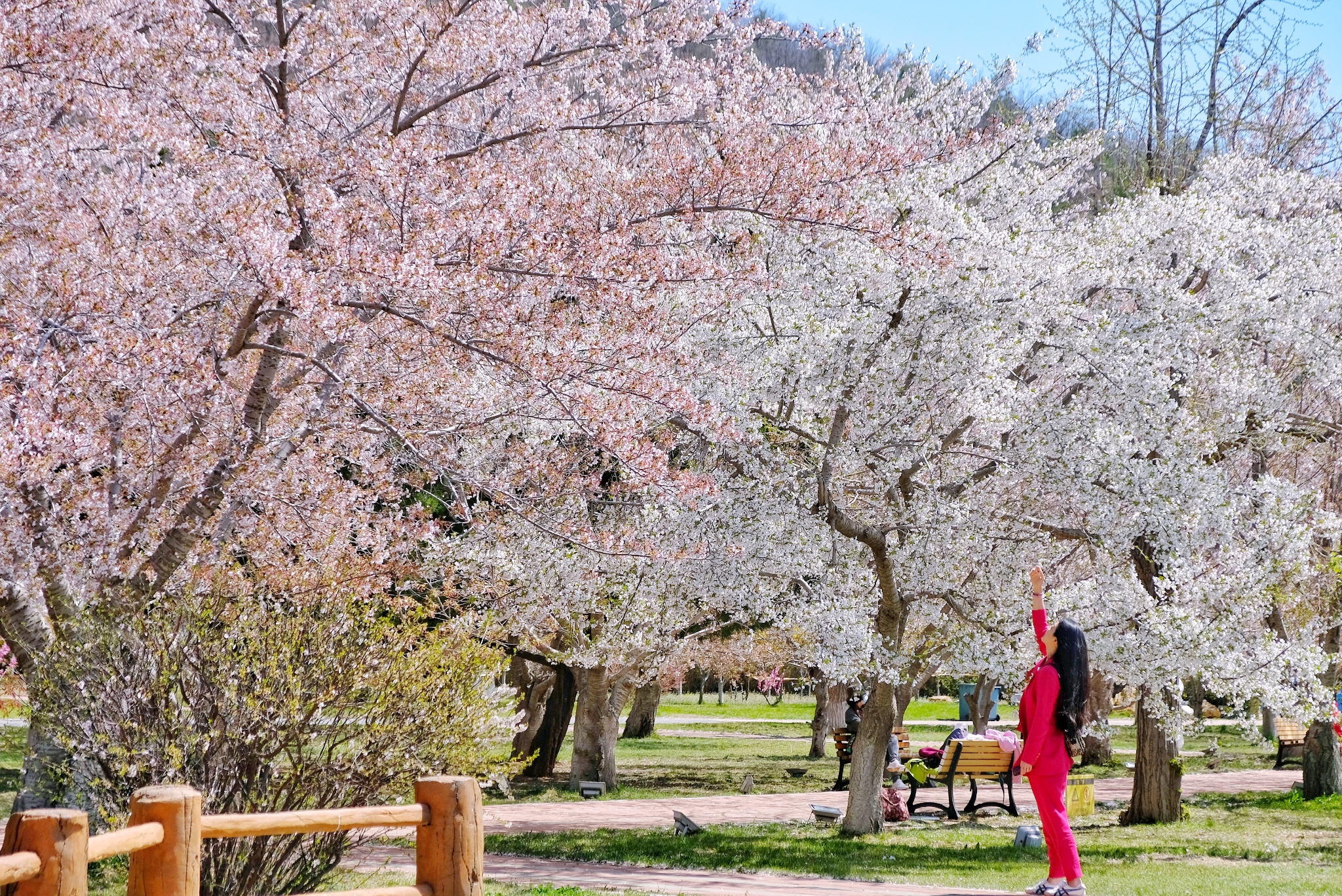 很多棵完全盛开的樱花树,呈现出拥抱的姿态,走进樱花树里,就像被出春天抱在怀里,太美好!五一开始,樱花园里的多瓣樱花会陆续全部盛开,千~万~别~错~过~