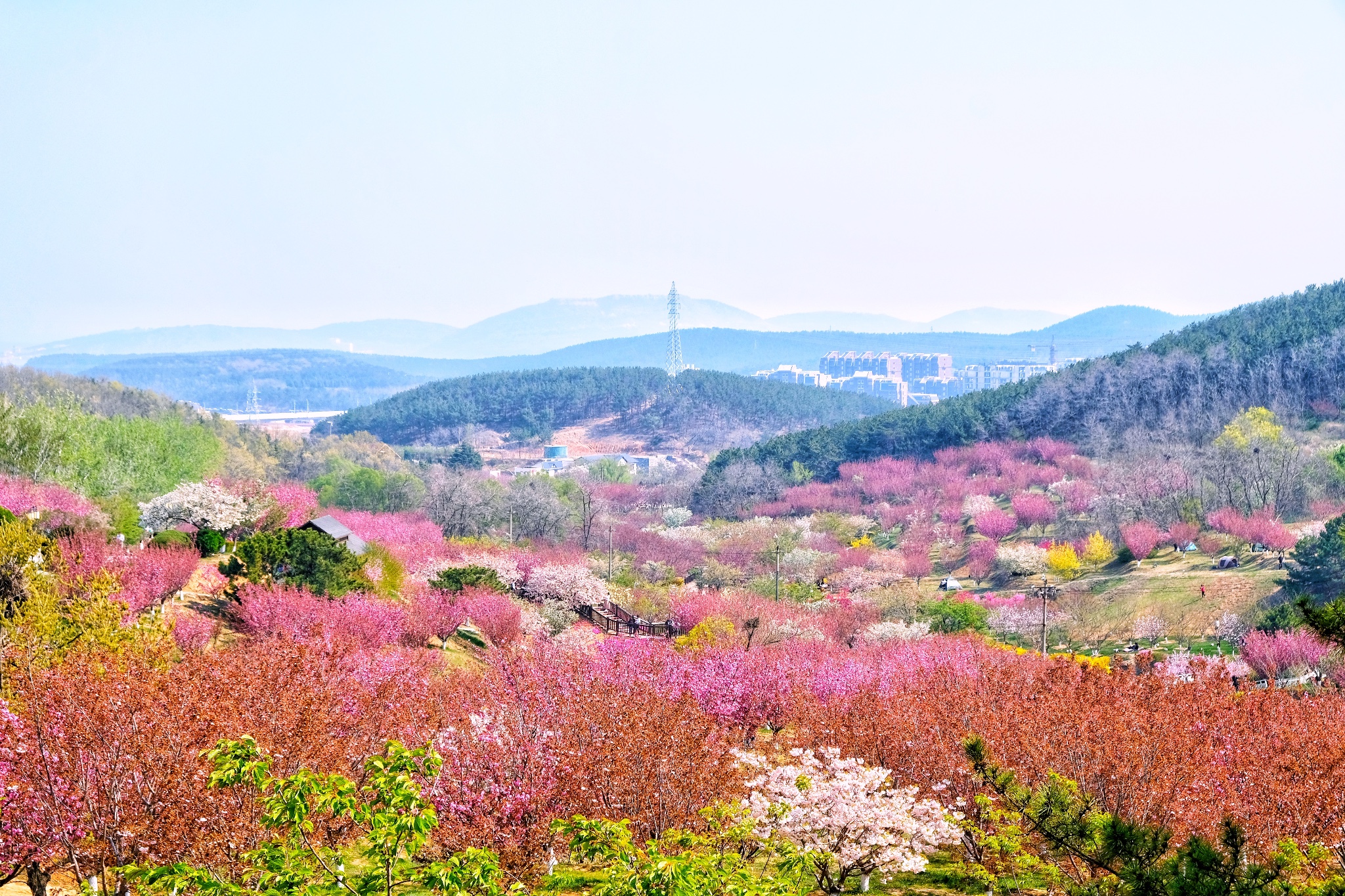 旅顺樱花园是目前国内园区面积大、樱花树多、品种最全的樱花园,有来自世界各地100多个品种3000多棵樱花树。园区的规划也很好,动线很顺畅,顺着路线一直走,就可以穿过不同颜色的树林和花丛,像穿过一个超大的调色盘,沿途时不时有一些搭配樱花设计的景观,比如中式的仙鹤雕塑搭配樱花,日式的阁楼栈道搭配樱花,让景色很丰富。