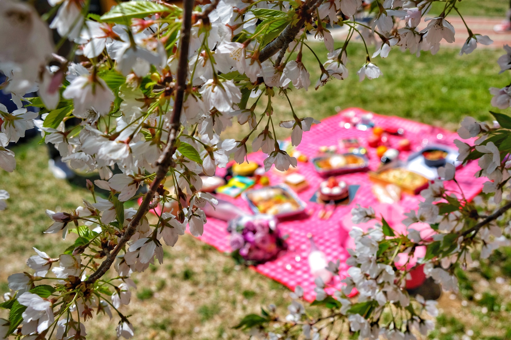 记得多带些好吃的,园区太大,可以看得花太多,可以拍照的地方太多,你会舍不得走的。也有很多人来这里郊游野餐,一家几口人或者三五好朋友,选一棵中意的樱花树,坐在树下享用美食打打牌,太惬意。
