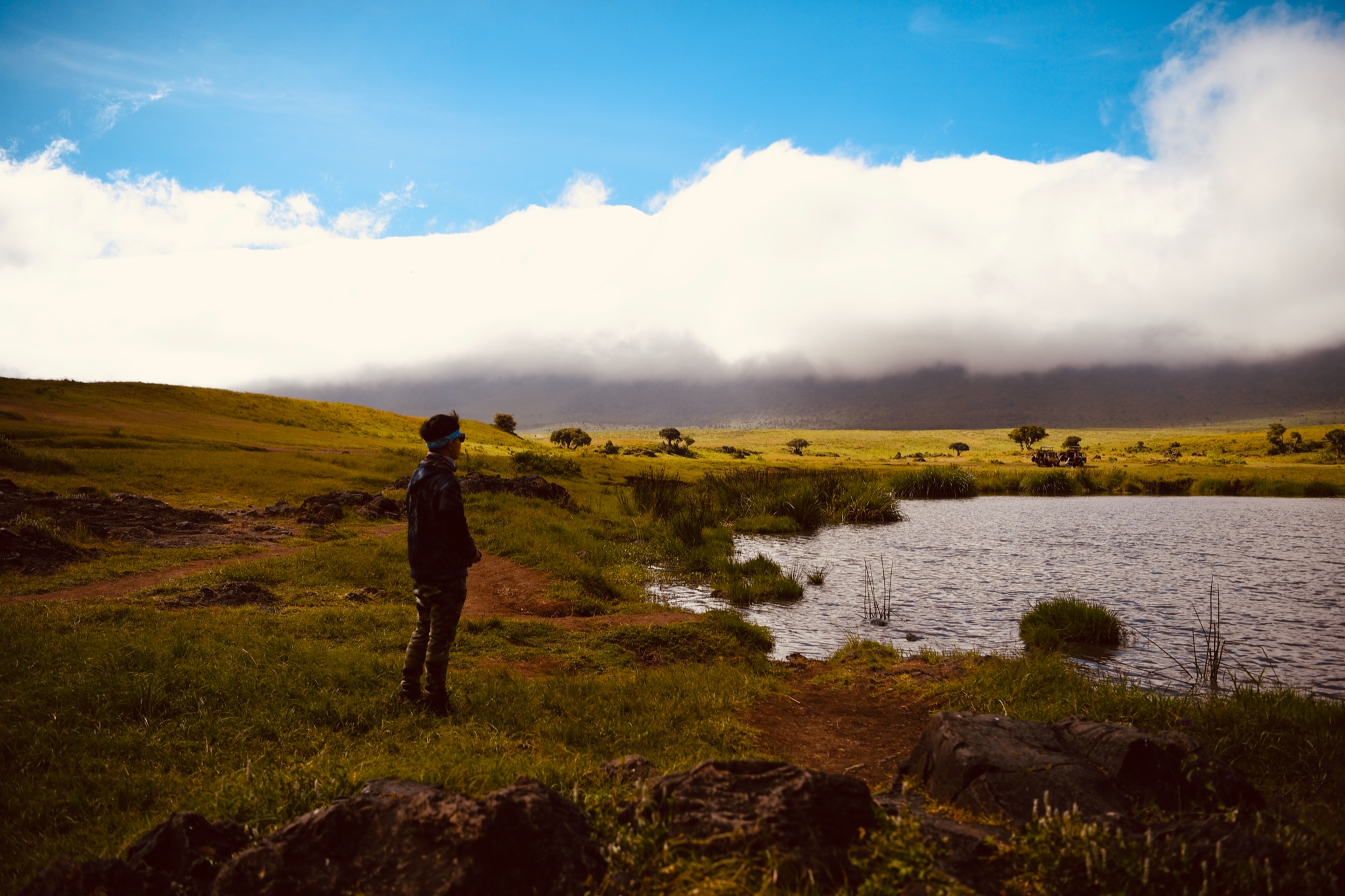 5月份来到坦桑尼亚的人并不多,我们似乎是唯一的游客。一路阴雨绵绵,空气中弥漫着雨季特有的泥土气息,我们从阿鲁沙赶来恩戈罗恩戈罗。坐在车上时,有时甚至需要多穿一件衣服,看来五月的非洲竟然还是凉飕飕的。午后一座巨大的火山口在雨雾中出现,我们下车,站在火山口周围高高的环形山上看着朦朦胧胧的火山口,这里比火山口底部高了600多米。因为水雾太大,我还有些担心会不会这几天都看不到火山口的全貌。我们继续出发,先去了位于环形山边缘处可以俯瞰火山口的酒店,没想到雨雾渐渐散了,火山口的露出了它的样子。然后我们向火山口的底部前去,那里是动物生存的地方。