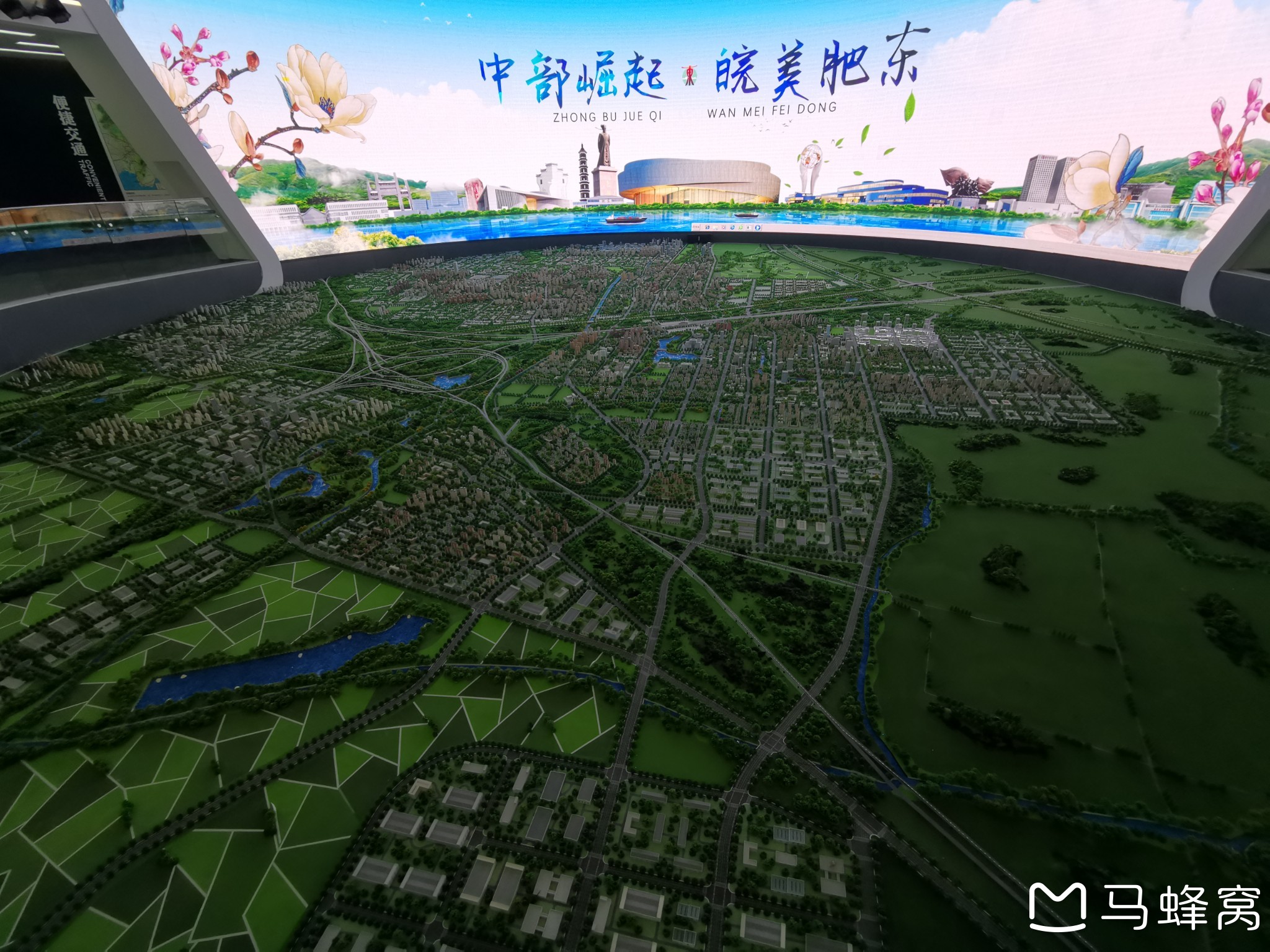 博物馆共分3层,去的时候只有一楼和二楼的展厅开放。博物馆内部中央是天井,中间有肥东县城规划沙盘。
