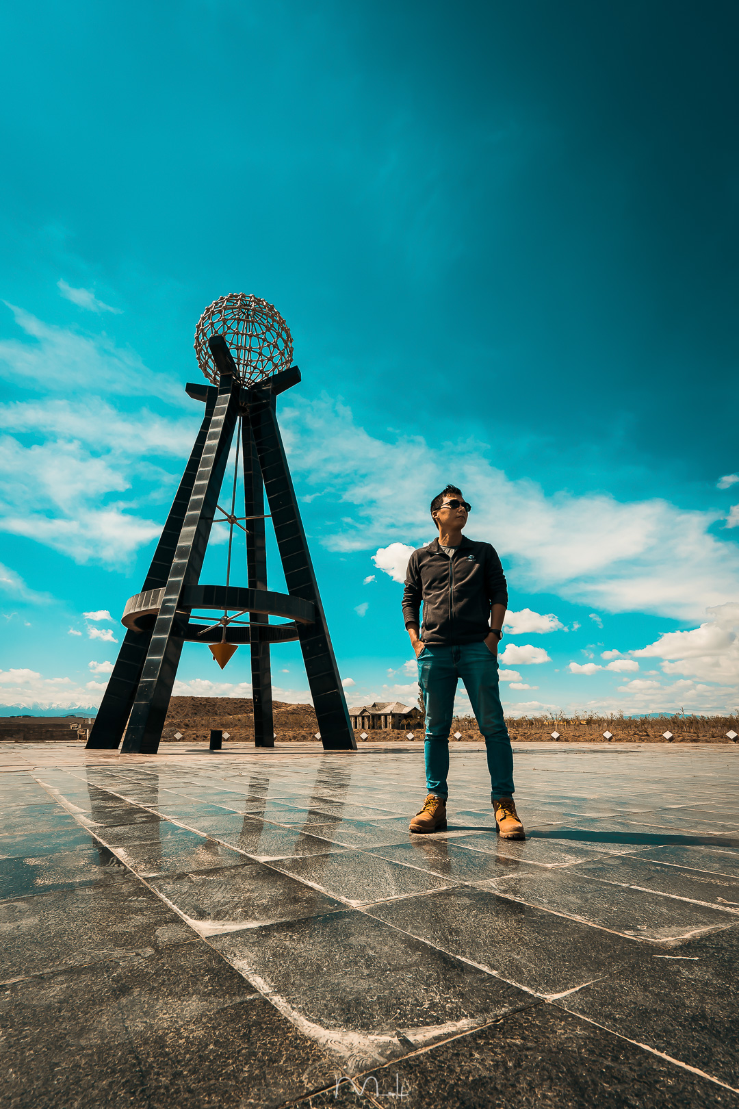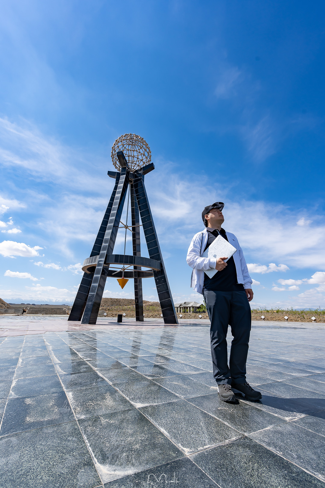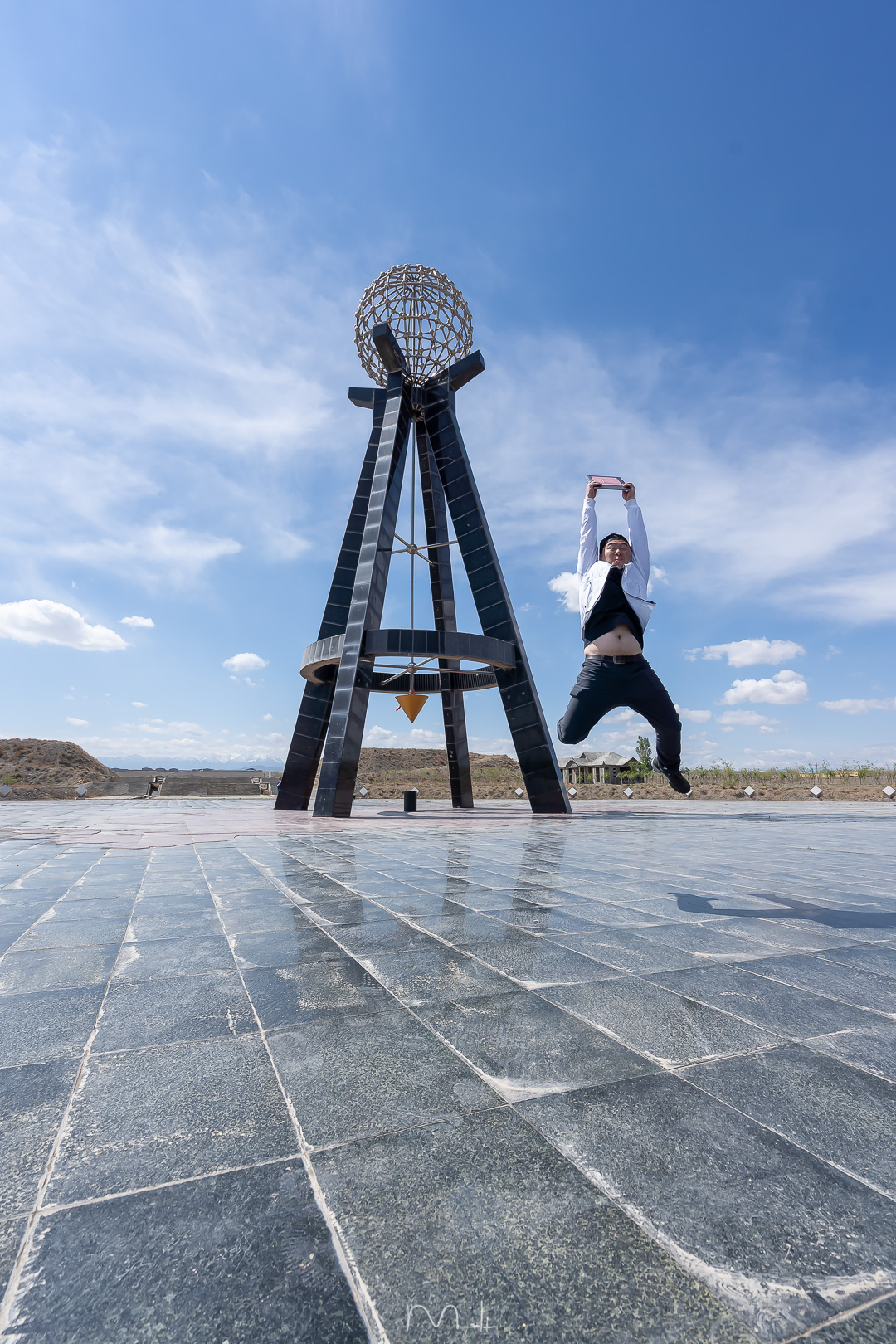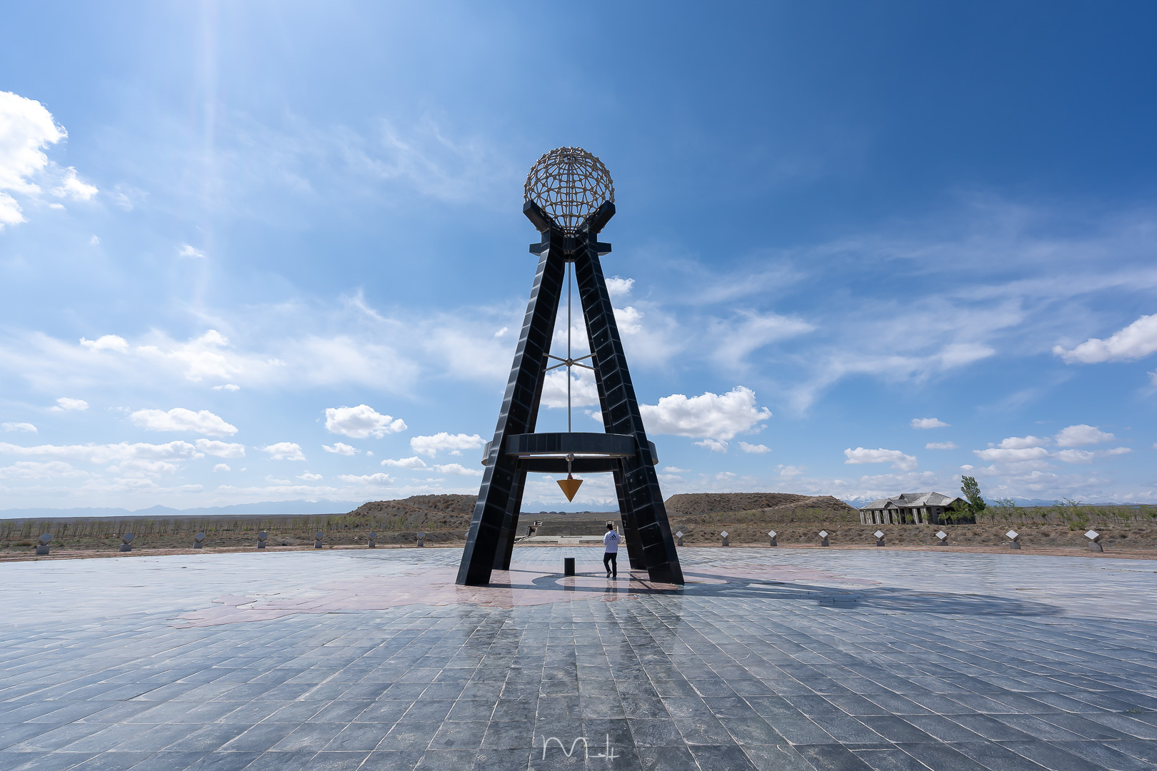 亚洲大陆地理中心处,是一座纪念碑,神似我的母校华中科技大学的“四年顶个球”纪念碑,而且还多了个“吊儿郎当的锤子”……打住打住,有点开车嫌疑。