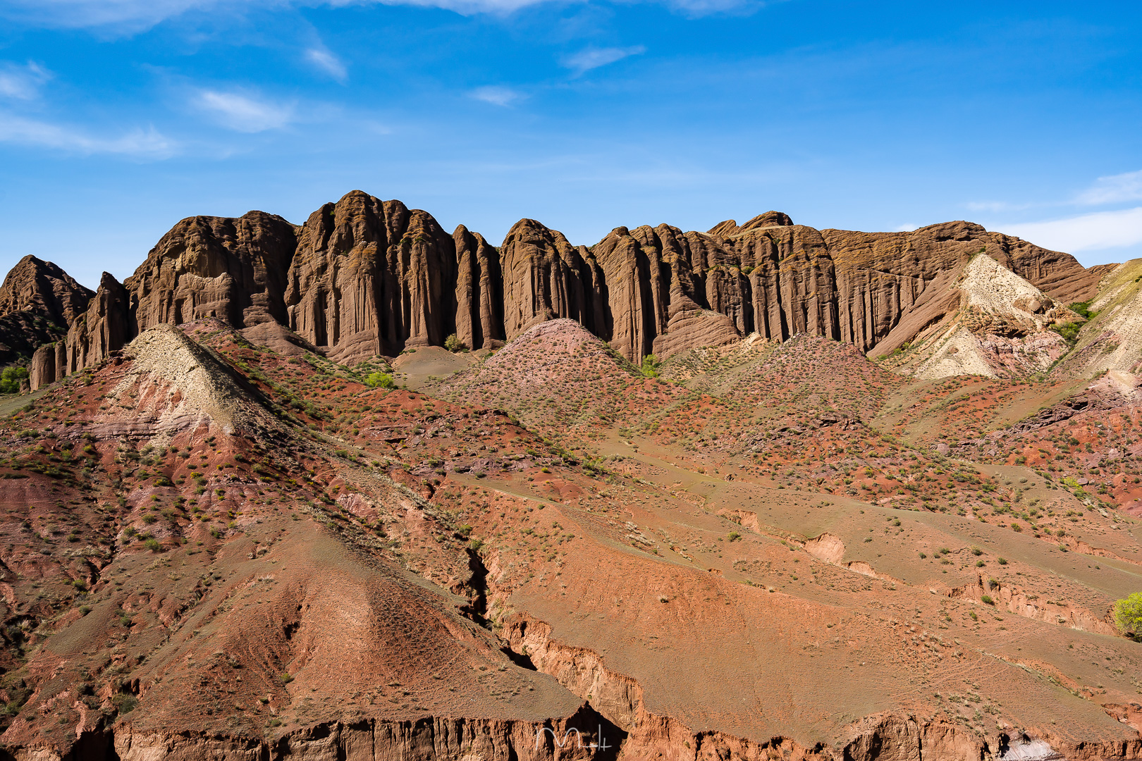 瞻仰了革命前辈之后,立刻赶往安集海大峡谷。安集海大峡谷位于安集海镇西南大概30公里处,是一条从天山延伸出来的大地伤痕,裂得如此大气磅礴,最近几年因为抖音等渠道的宣传,红了起来,但成也抖音,败也抖音,一些不爱护环境的游客,把车开到了地质脆弱的悬崖边上摆酷,那个最著名的网红尖尖在一次大雨之后轰然坍塌,好在当时没有人也没有车。当我们满怀期待即将到达的时候,发现前面的路被完全拦起来了,有武警战士把守,说道路正在施工,闲人免进。你现在看到的照片,是我去年6月拍摄的。