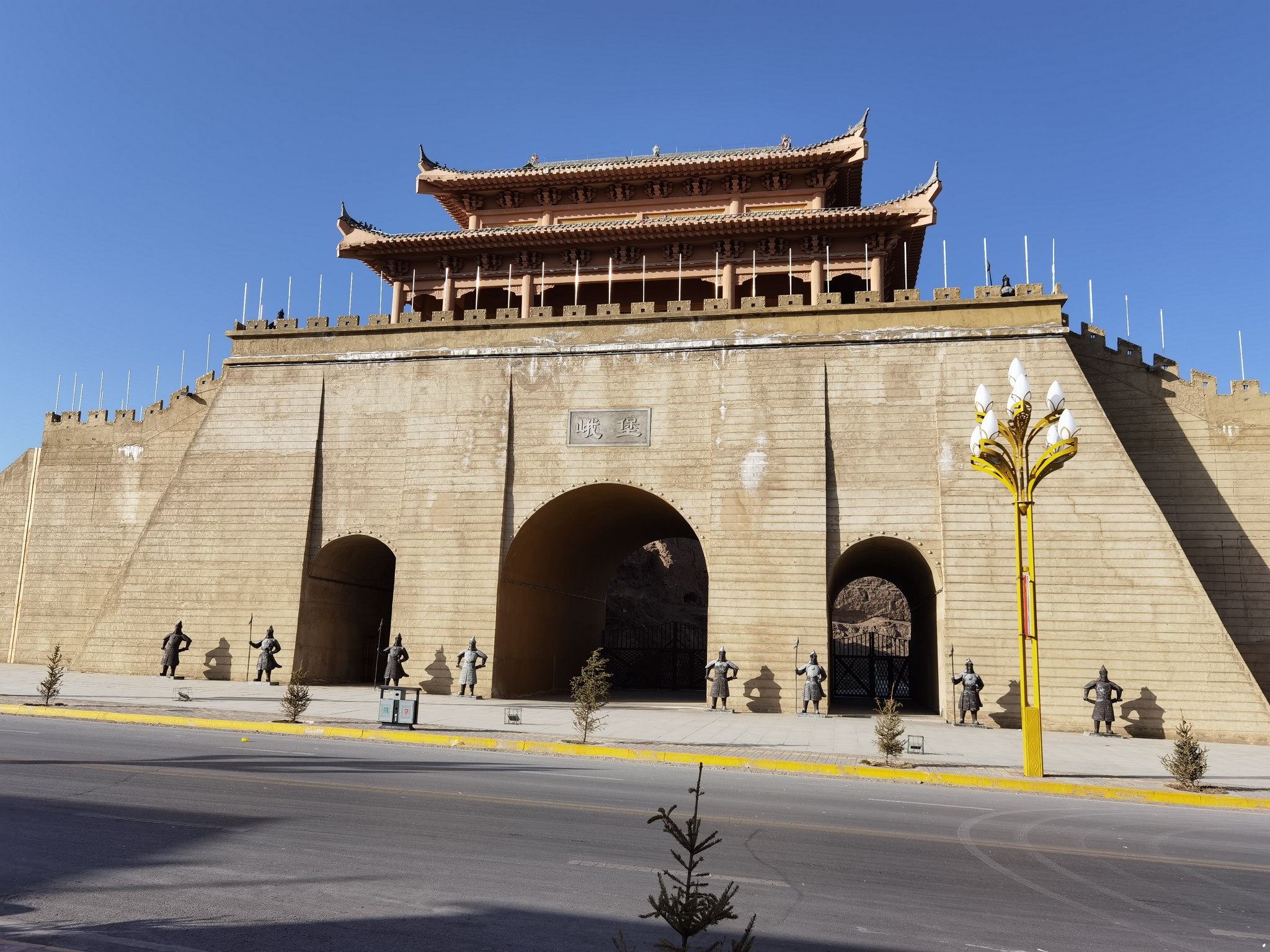 峨堡古城约始建于公元1206—1279年间,位于国道227线(即宁张公路)与峨祁公路交汇处的祁连县峨堡镇,系通往河西走廊的交通要道,也是祁连至门源、西宁的必经之地,是古丝绸之路南路上的重要驿站、茶马互市及军事要塞,素有青海北大门之称。由于疫情,古城仍然没能开放,只能在门口拍照留念。