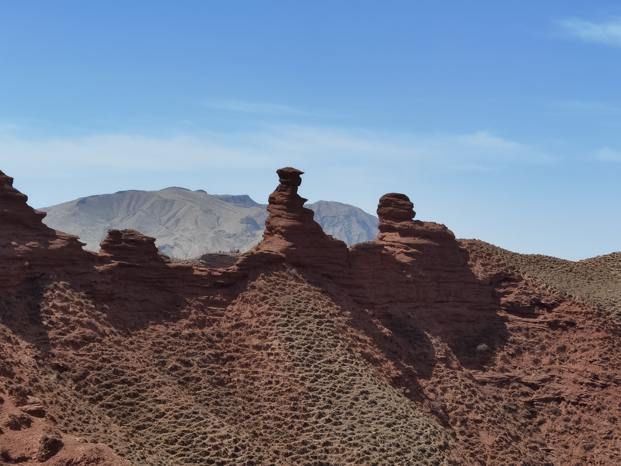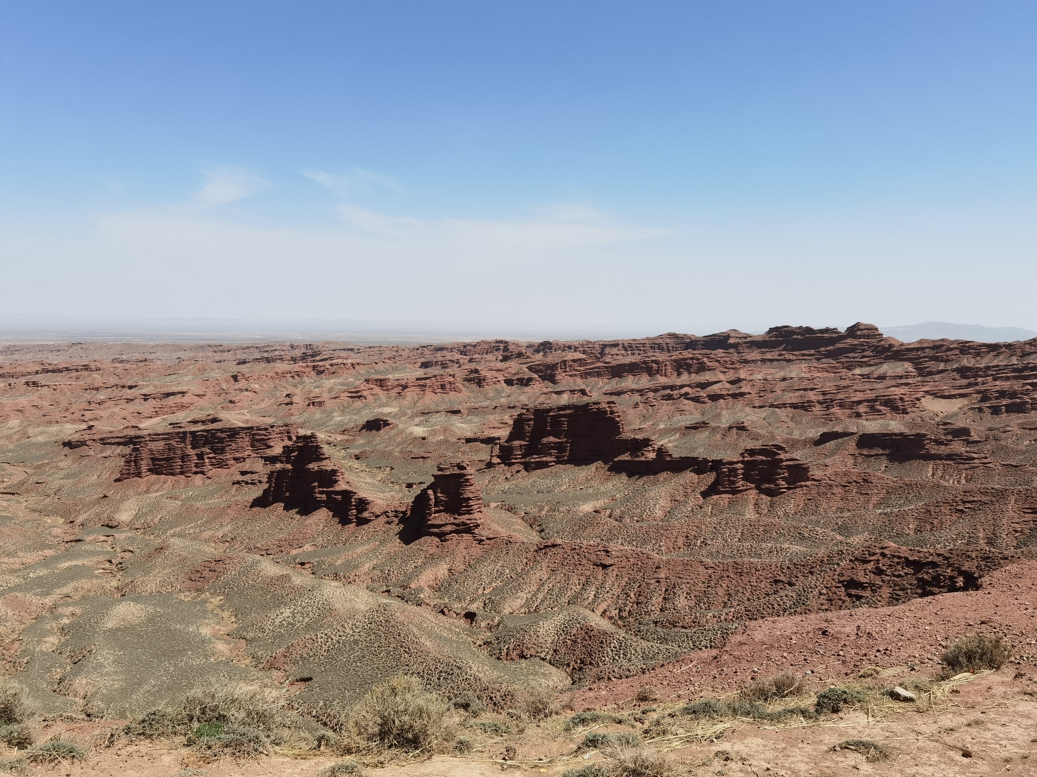 早上吃完早餐8:30从民乐县城出发,民乐县城距离平山湖大峡谷125.6km,车程约2个小时20分,路况较好,途径张掖市区。