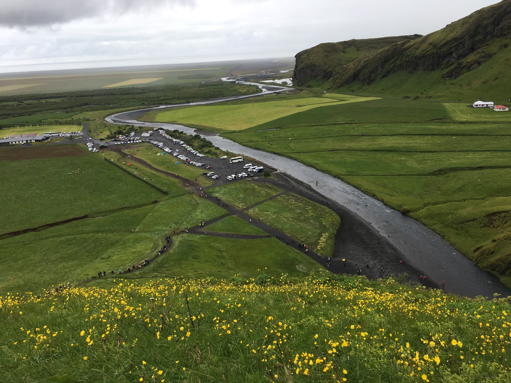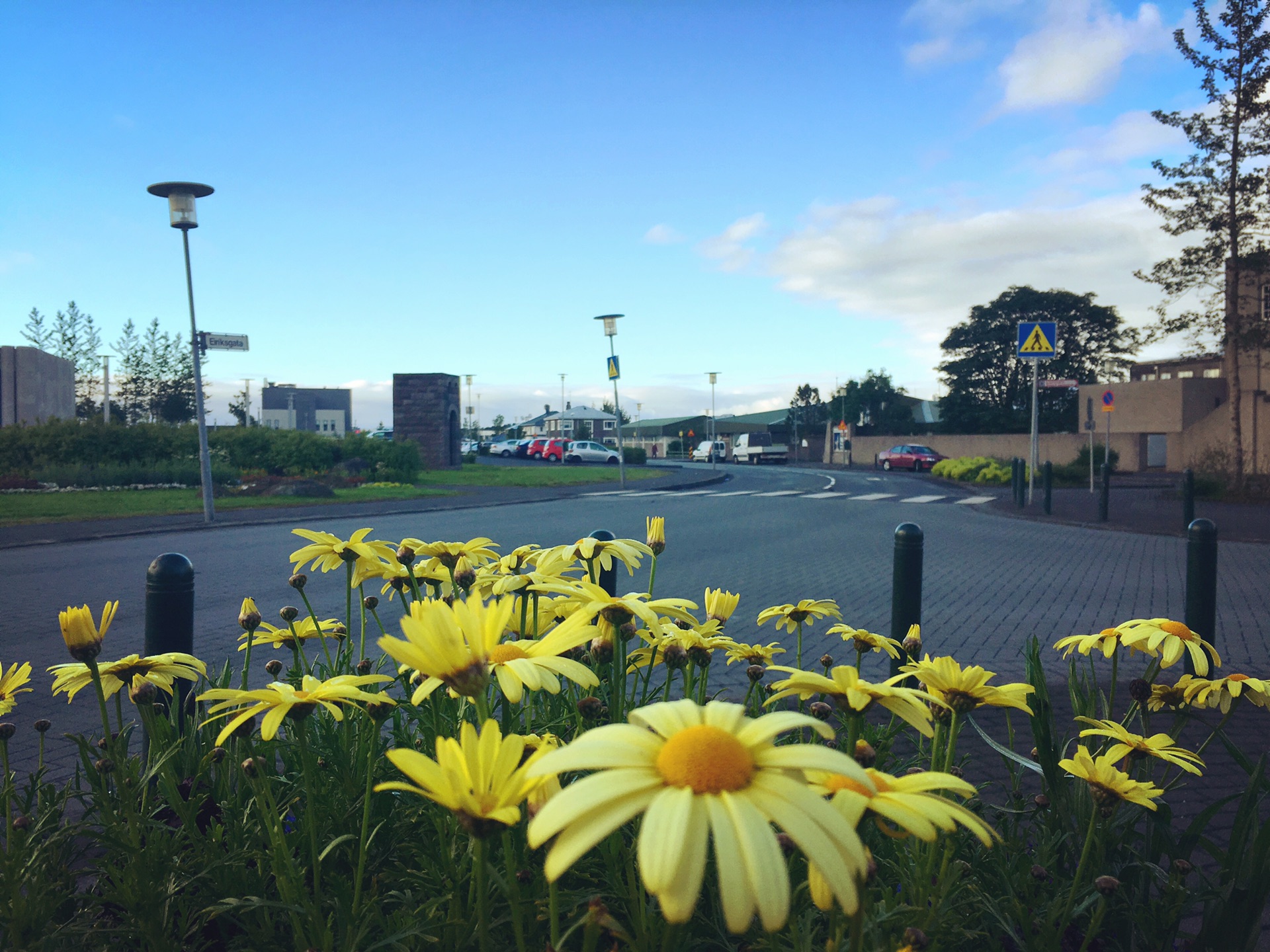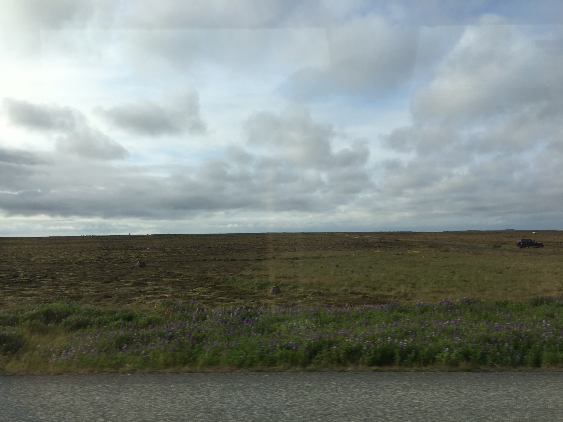沿途有点荒凉,但路边开满了鲁冰花。天空有点点灰,云层有点厚但傍晚的冰岛却没有半点日落的痕迹。