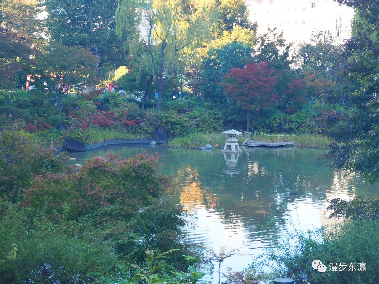 正逢红叶满开,从人工湖两边可以看到银杏和枫树,充满诗情画意,作为东京最大规模的日本庭院,东方传统艺术风情无处不在