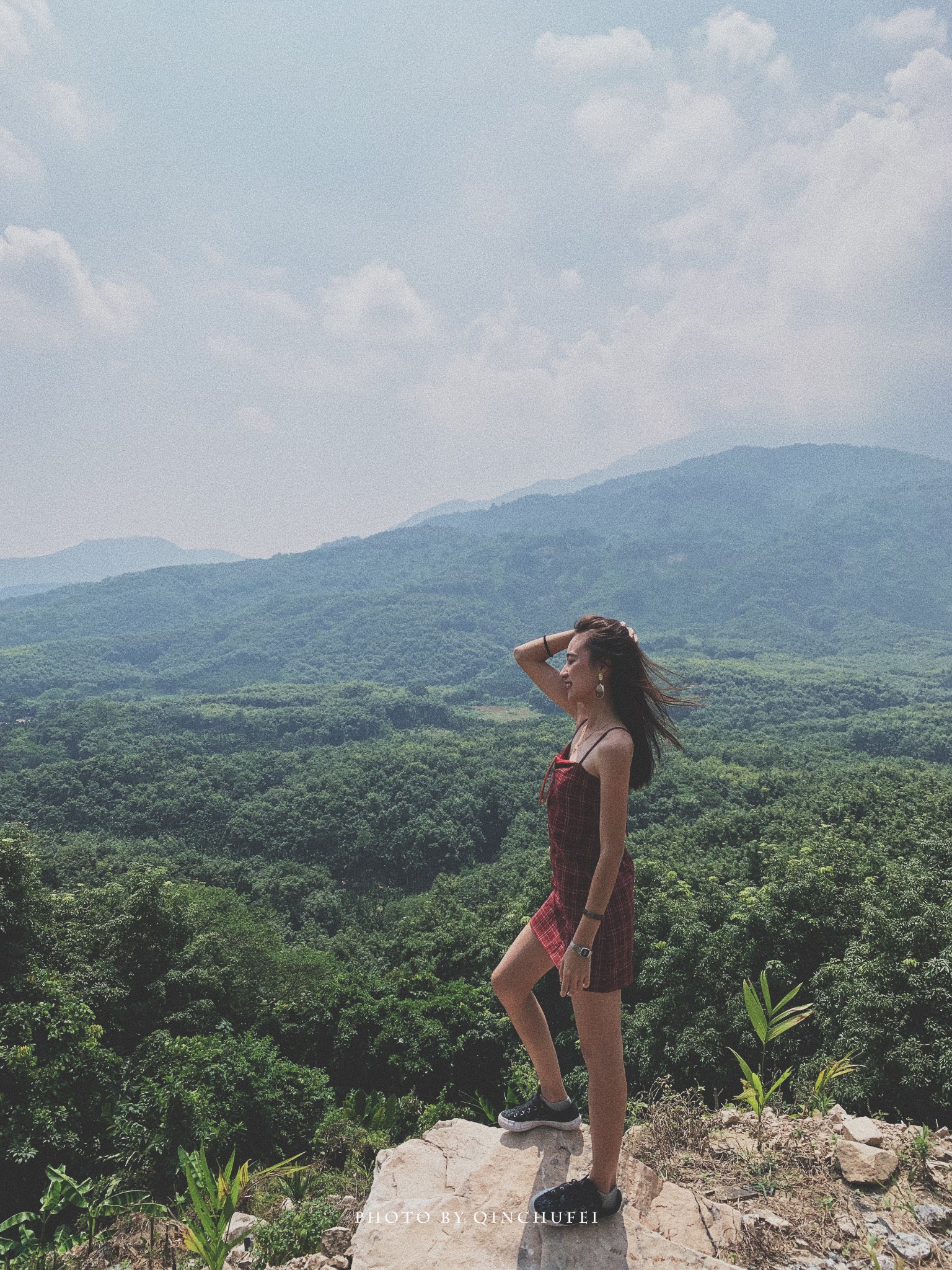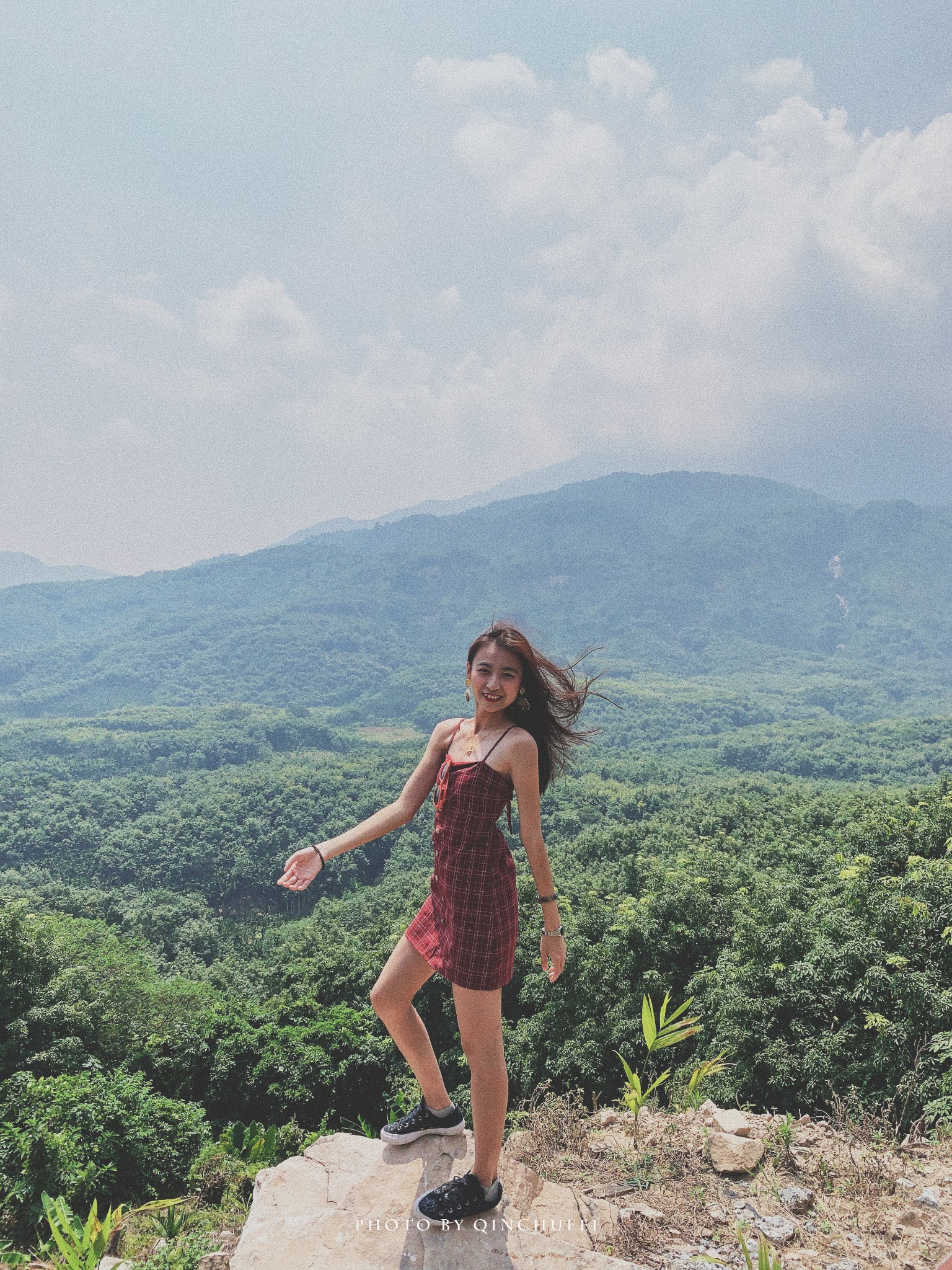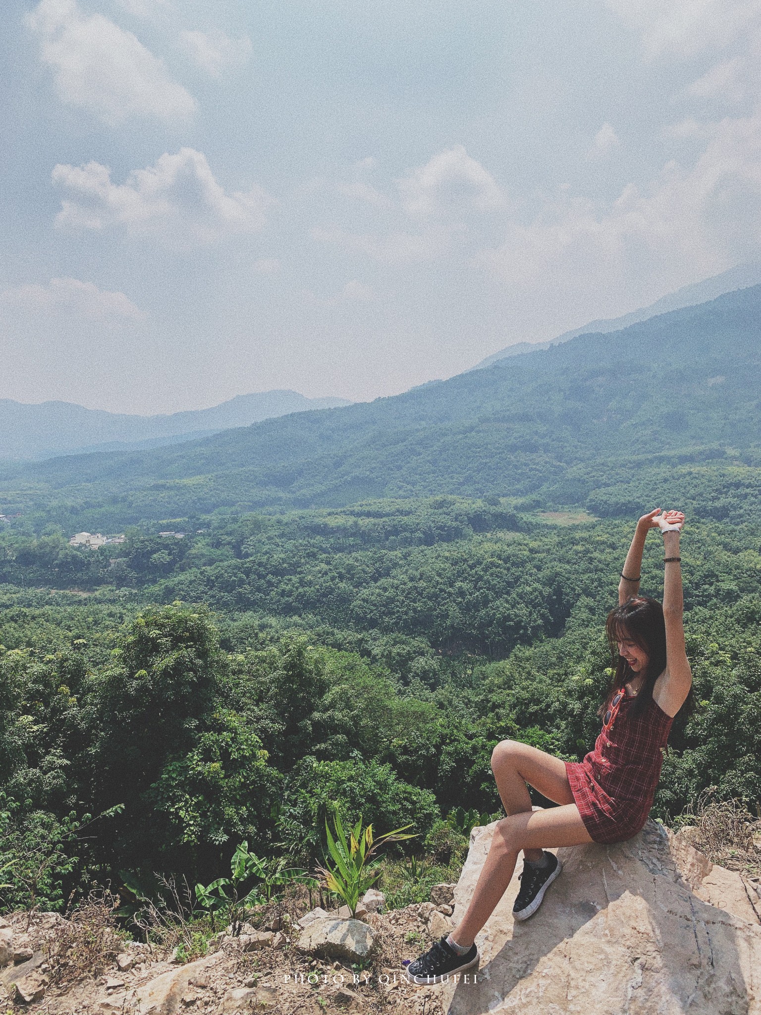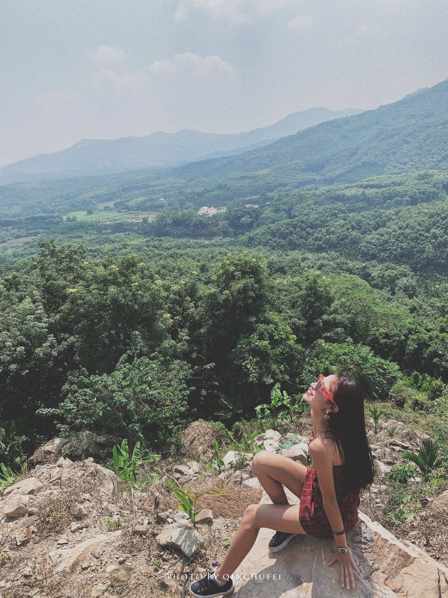 沿着山路走着,会经过黎母山的观景点,一行拥有冒险精神的三人,小心翼翼走在崖边,坐在凸起的大石头上,整个山景尽收眼底。