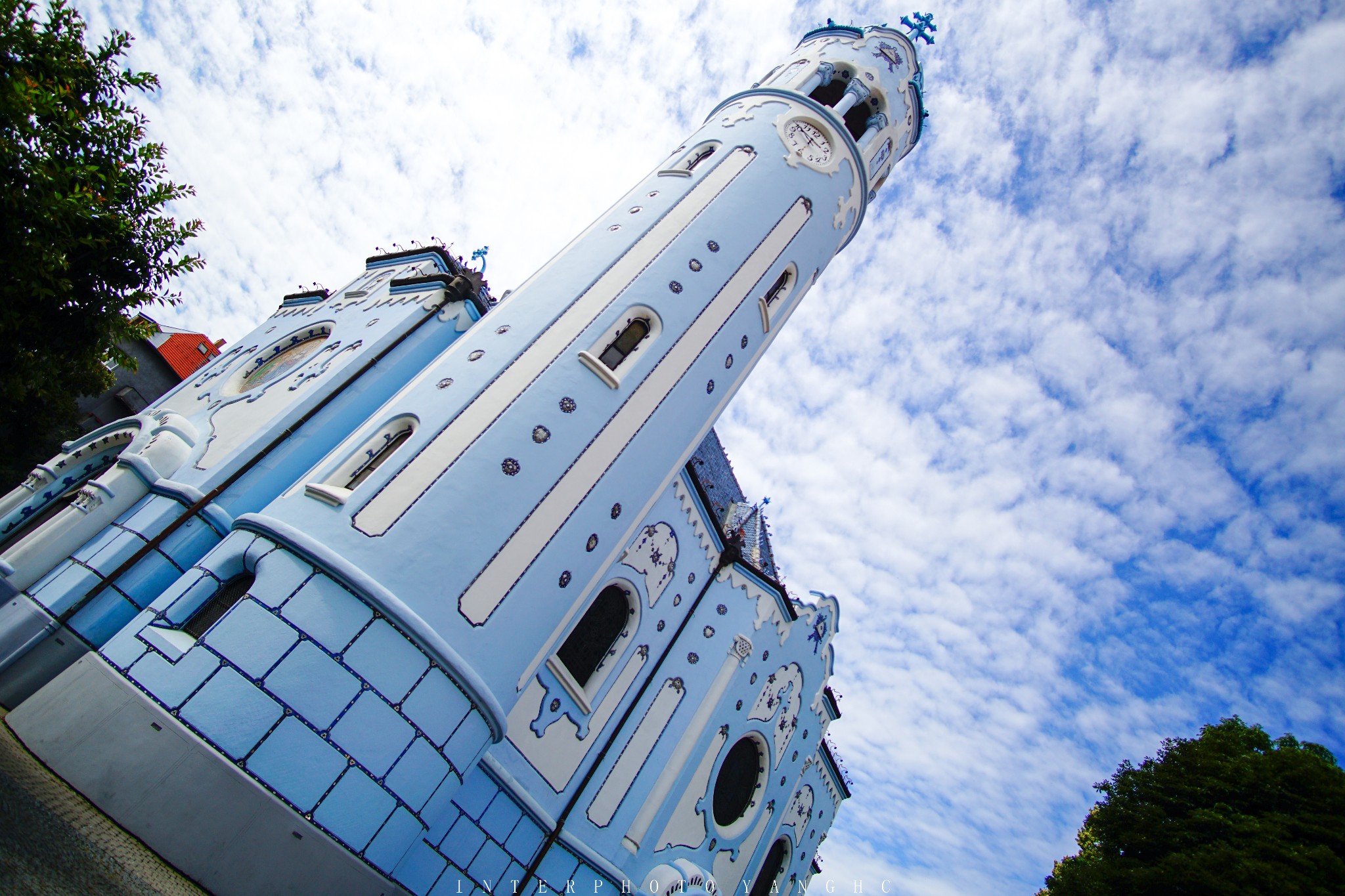 欧洲华丽的教堂太多了,突然看到这样一座小巧梦幻的教堂,反而让人眼前一亮。跟着导航穿过几个居民区后,远远的就能看到它,明亮的蓝白色跟附近老旧的居民楼形成了鲜明的对比。