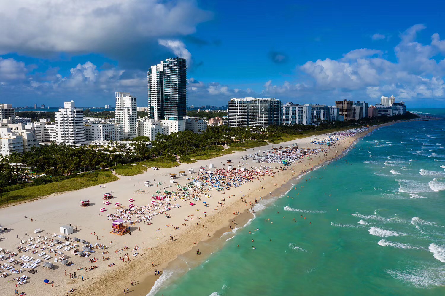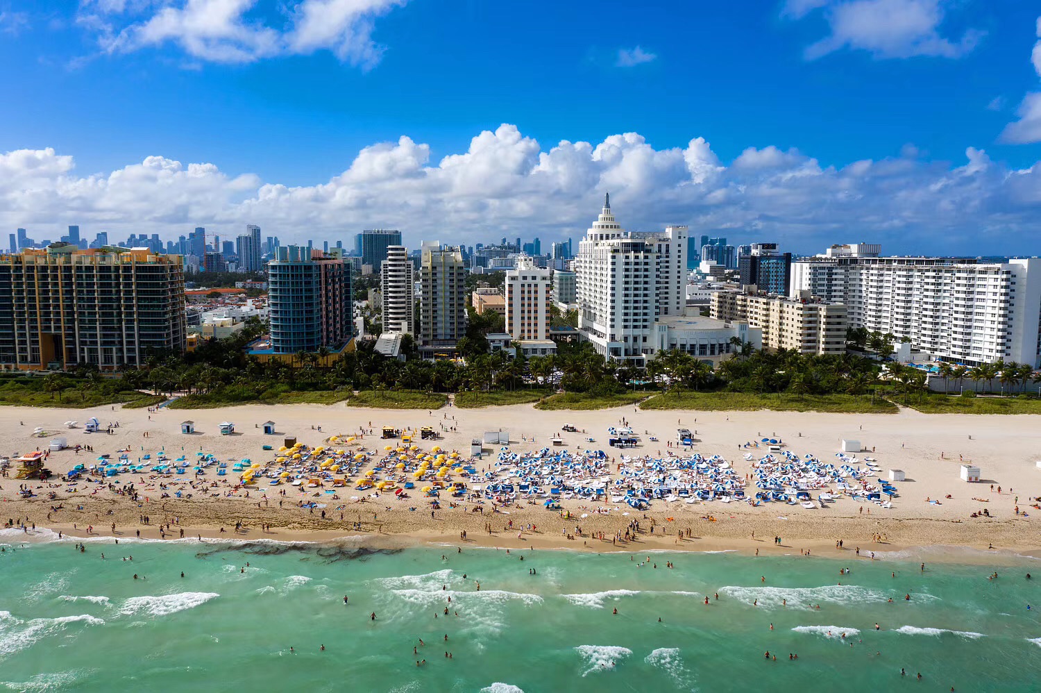 来穿插一组迈阿密航拍的south beach,白天的South Beach很喧闹。