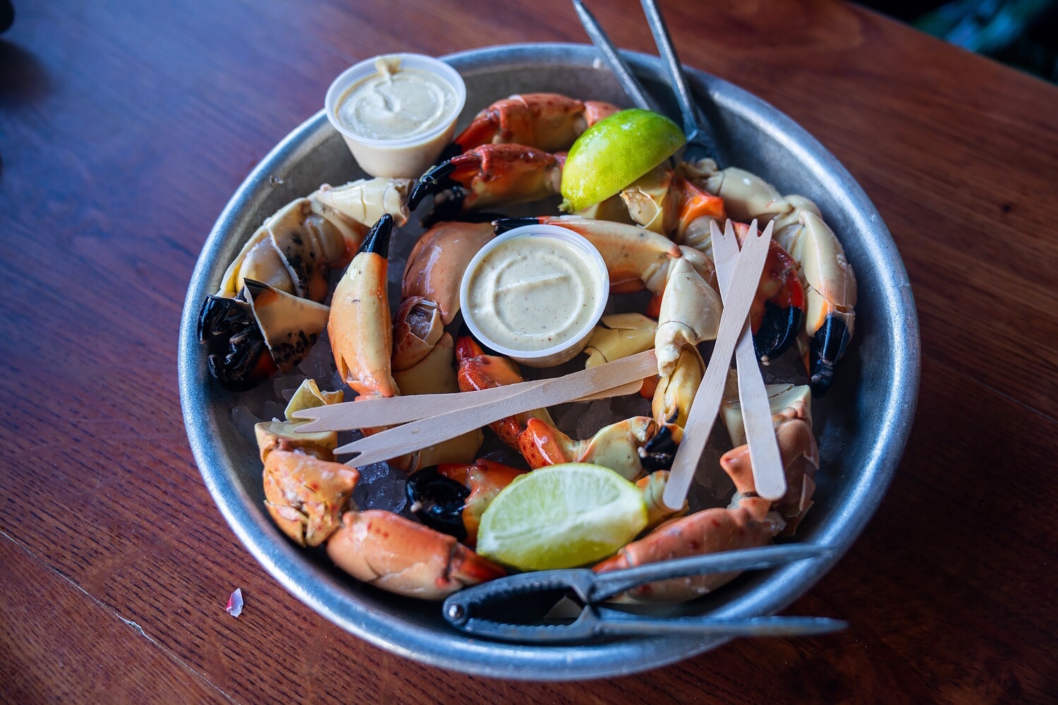 本次南下不光要饱眼福还要饱口福,之前就做好攻略的石头蟹,都说在迈阿密吃会很贵,于是我们就选择了Key West来品尝,可能攻略的视频介绍大概也是宣传广告,这间开放式的酒吧(Half Shell)里的石头蟹真的不推荐,点了一个大份但是端上来很惊讶很小不说还很少就要150刀!!不过口感就一般把,没有想象的鲜美,首先壳就跟石头一样坚硬,其次肉还算甜是满腹的厚实。如果想吃石头蟹的宝宝可以另寻别家不要才这家的雷了。