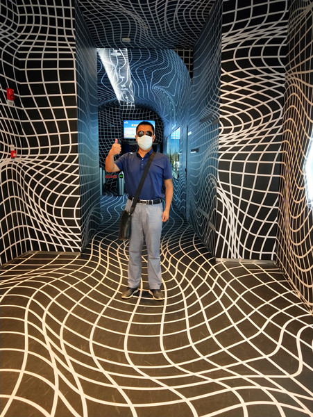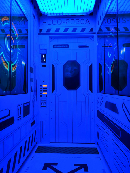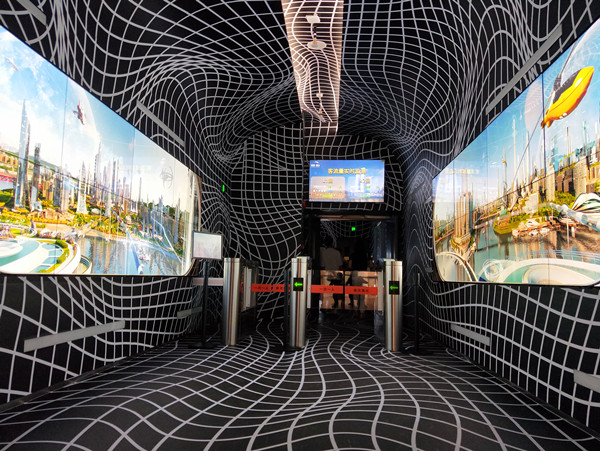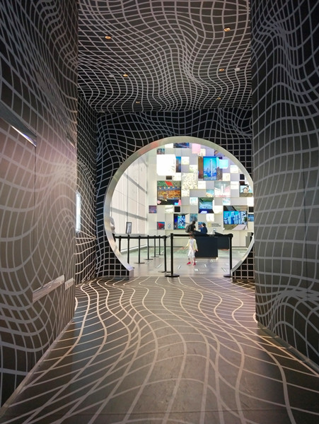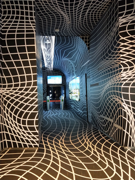 入口过道被不同的曲线所覆盖,类似于时空隧道的感觉