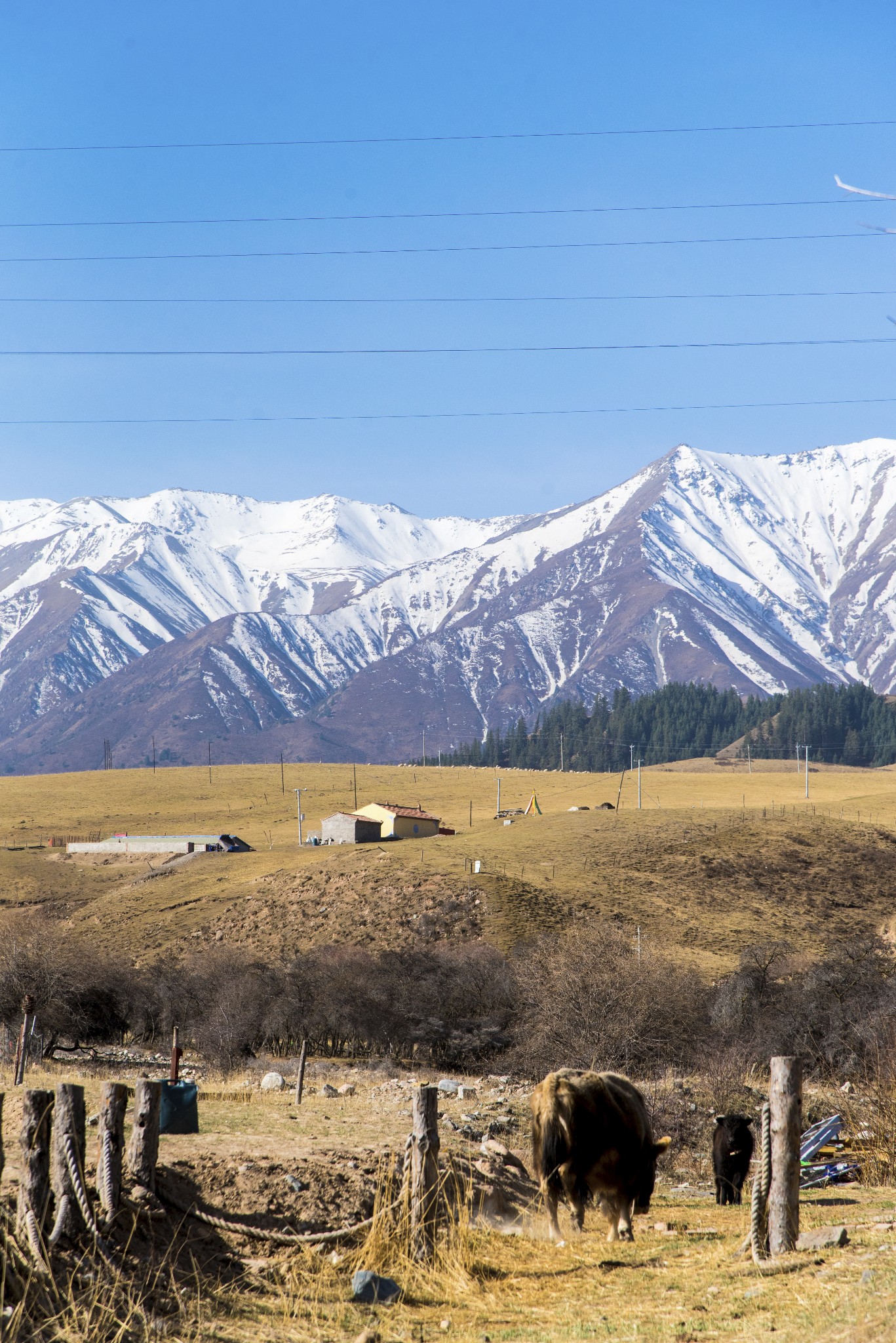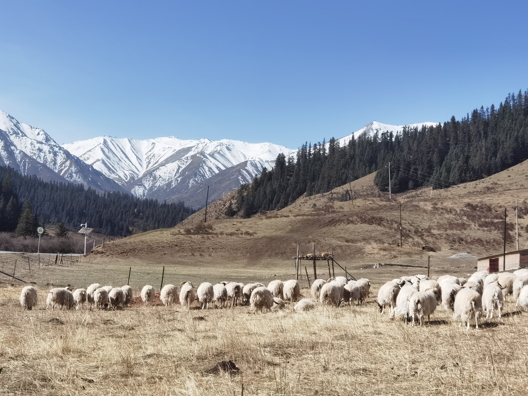 继续行驶,转弯之后,进入302省道。雪山、草地、羊群又出现了。