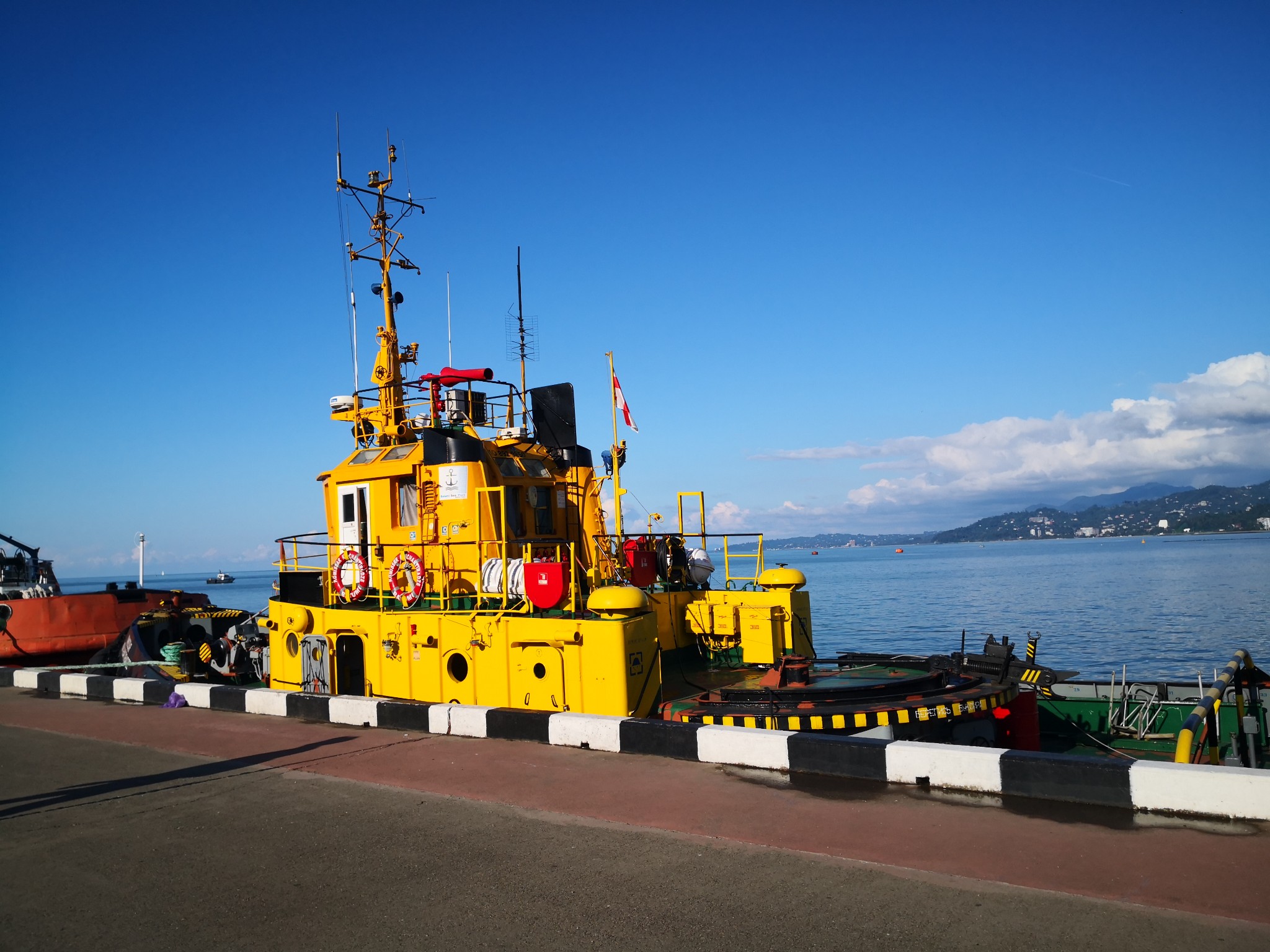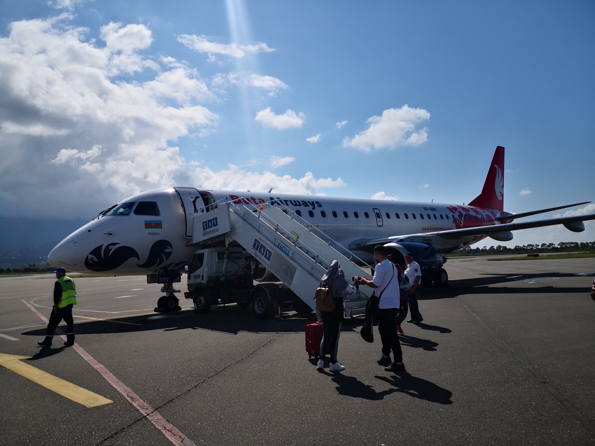 每年夏天,阿塞拜疆布塔航空都会开行巴库到巴统的度假航班,票价600人民币左右,上飞机之前过海关,海关的女员工还拿着我的护照叫我交她怎么读我的名字。飞机上发了一个热狗,是凉的,里面有火腿和腌黄瓜,勉强可以果腹。