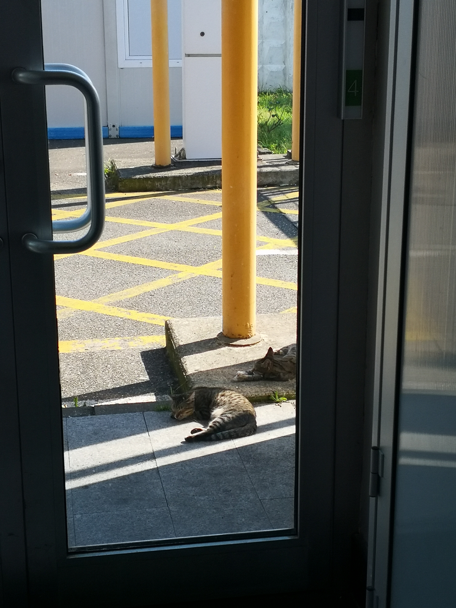 机场的猫悠闲地躺在一旁晒太阳