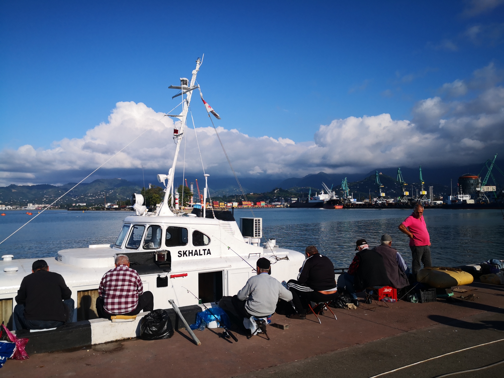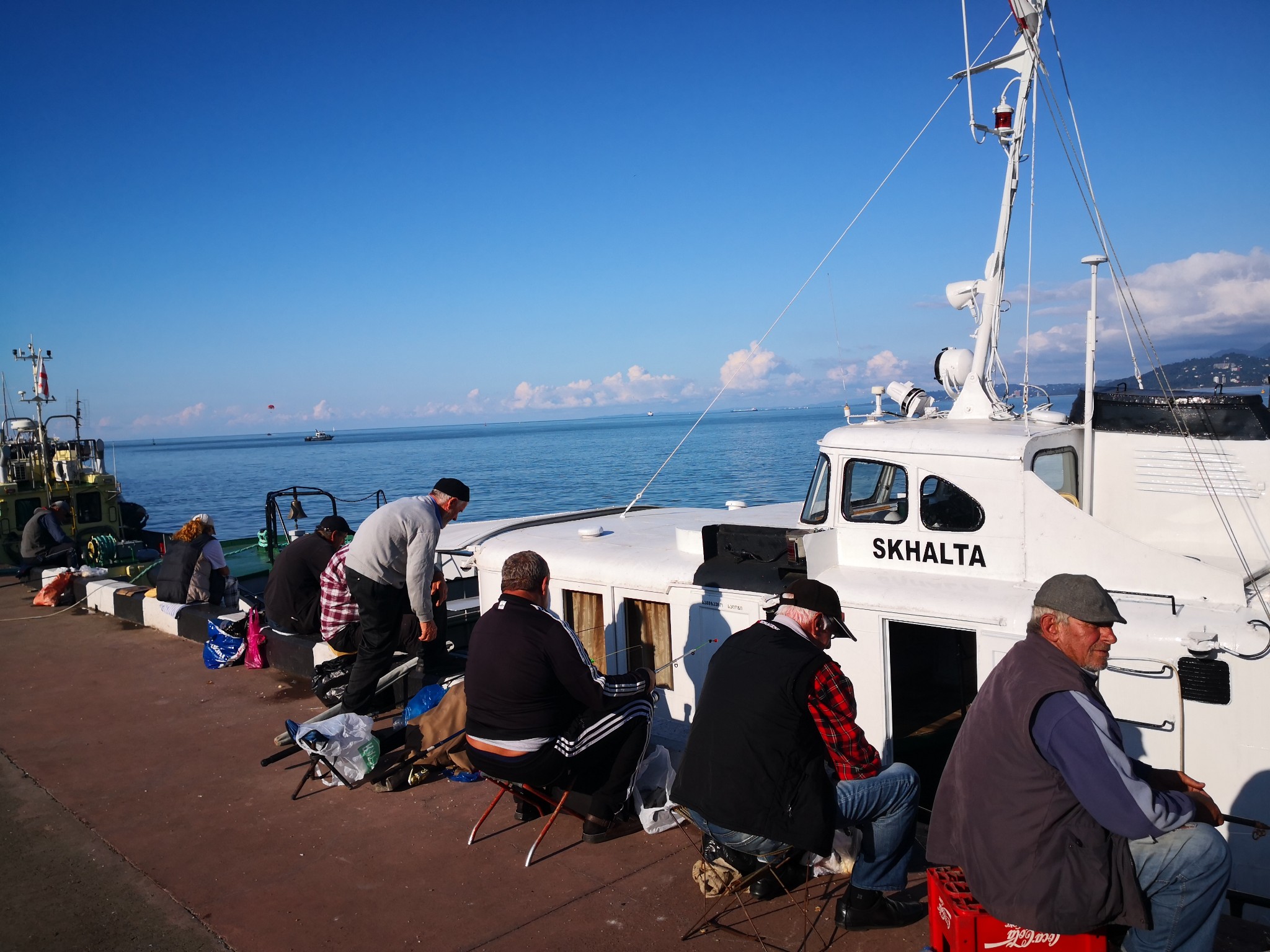 黑海之滨,老人们在悠闲地钓着鱼。