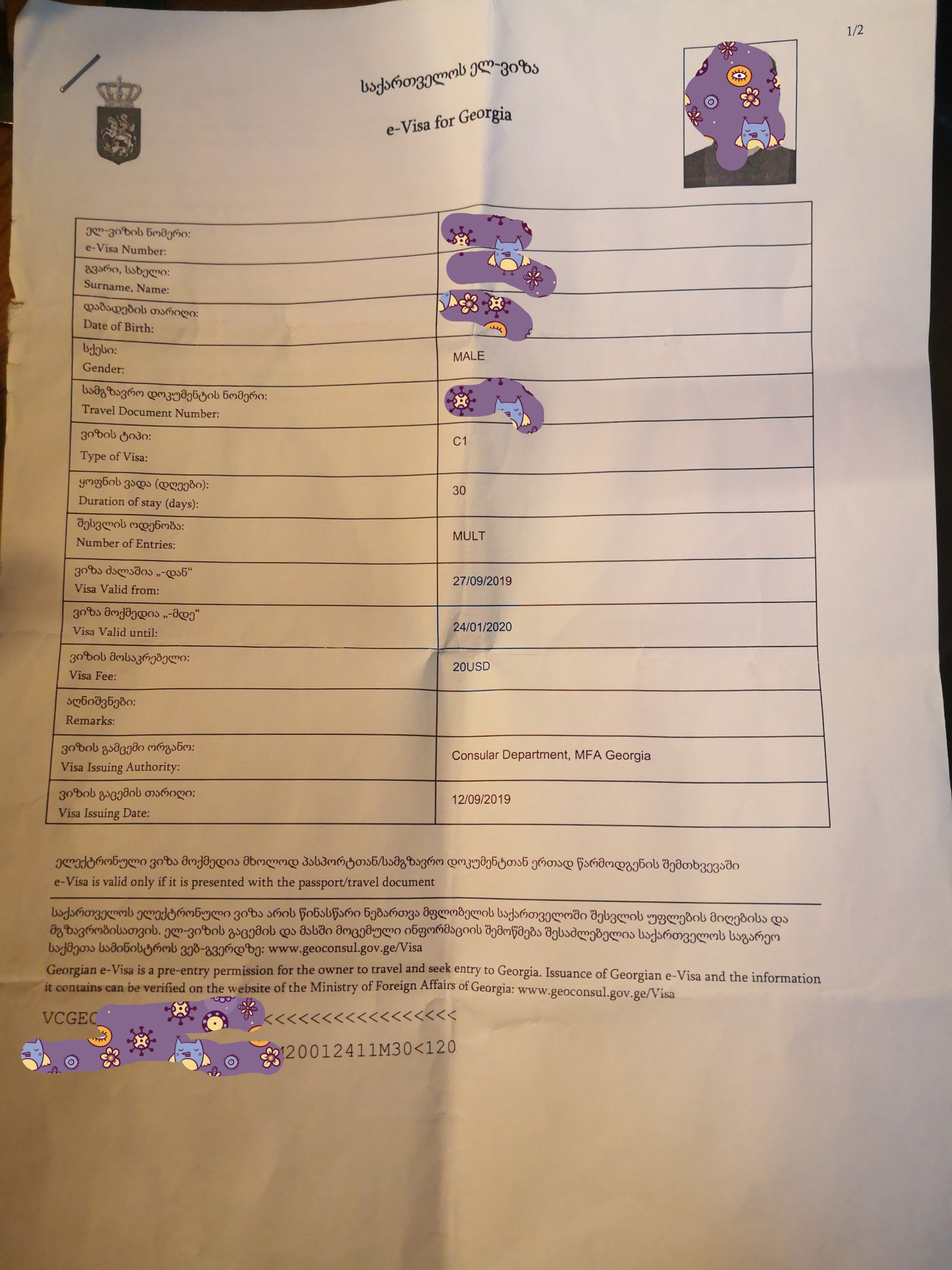 格鲁吉亚签证是电子签,可以在网上自己办理价格20多美金,信用卡支付。也可以利用申根、美国、日本、韩国等签证免签入境,我有韩国签证,但是为了保险起见还是另外申请了电子签,6个月有效期可以无限往返格鲁吉亚。