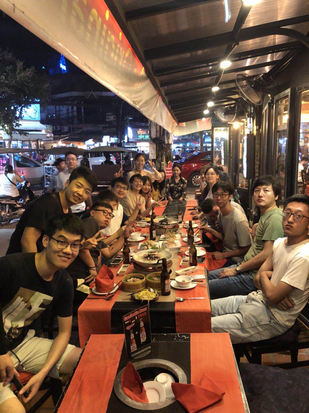 今晚,我们的柬埔寨团队还有马拉松组即将汇合,在城市的在河东岸最好的一家法餐吃饭,老板是瑞士人,整个团队都很开心。