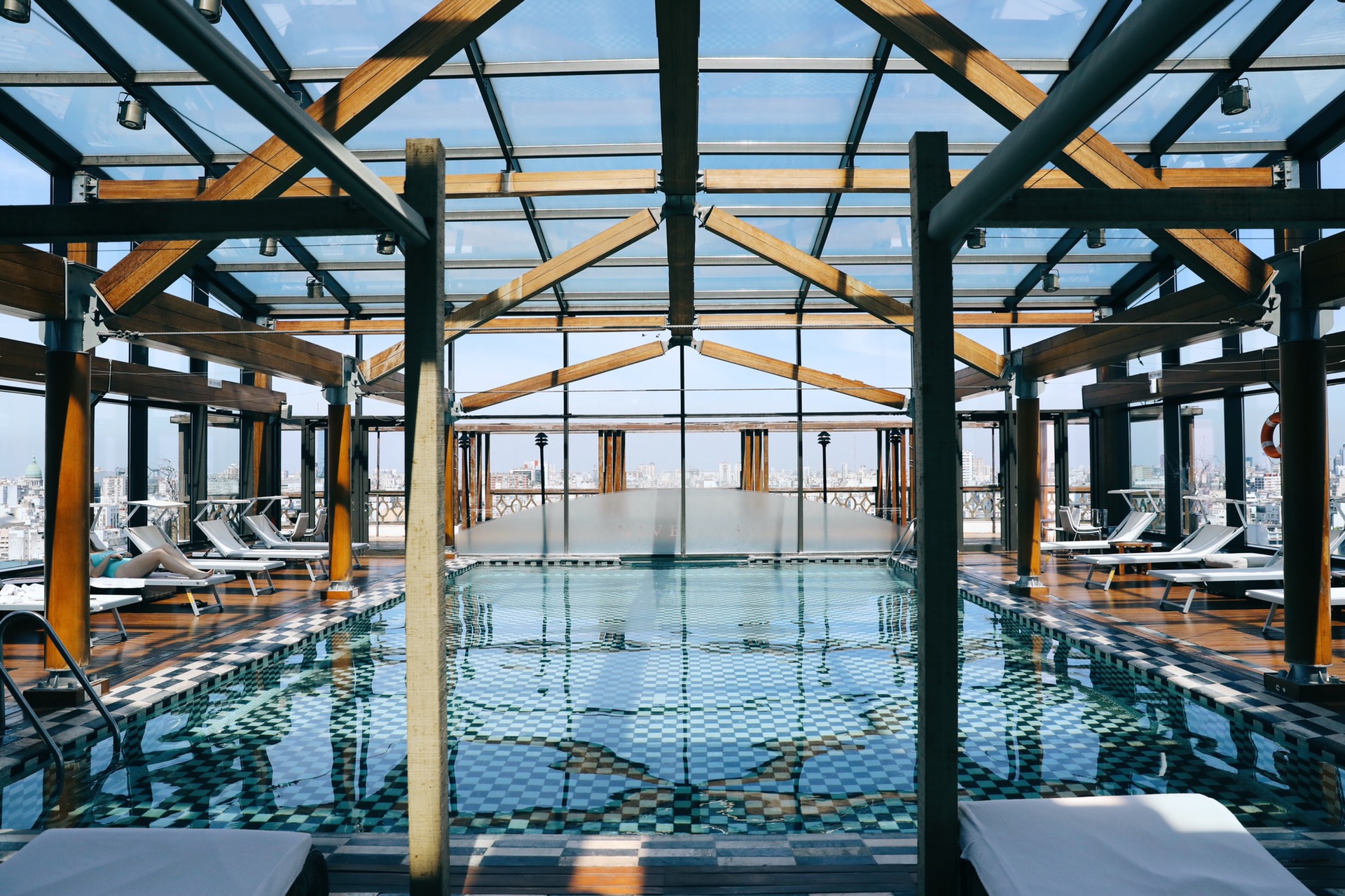 顶楼的天台泳池是亮点,可以走到外面的欣赏城市风光。需要注意的是晚上九点天台就关闭了,我们错过时间没有拍到夜景。