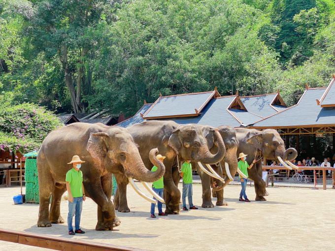 当然,来了一次野象谷,总不能一头象也不给看,离景区出口不远的大象学校,每天有两场表演,需要提前安排好时间。