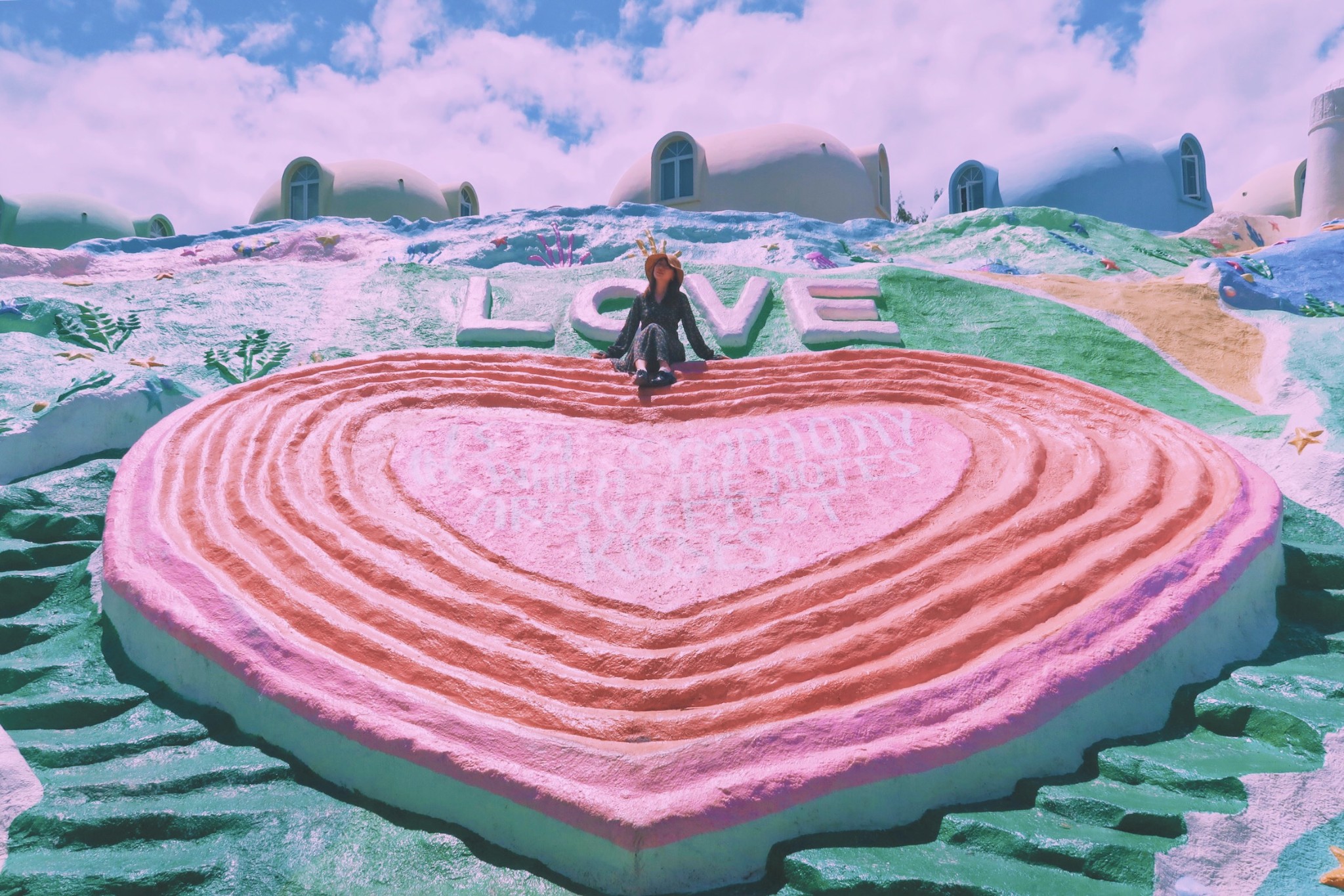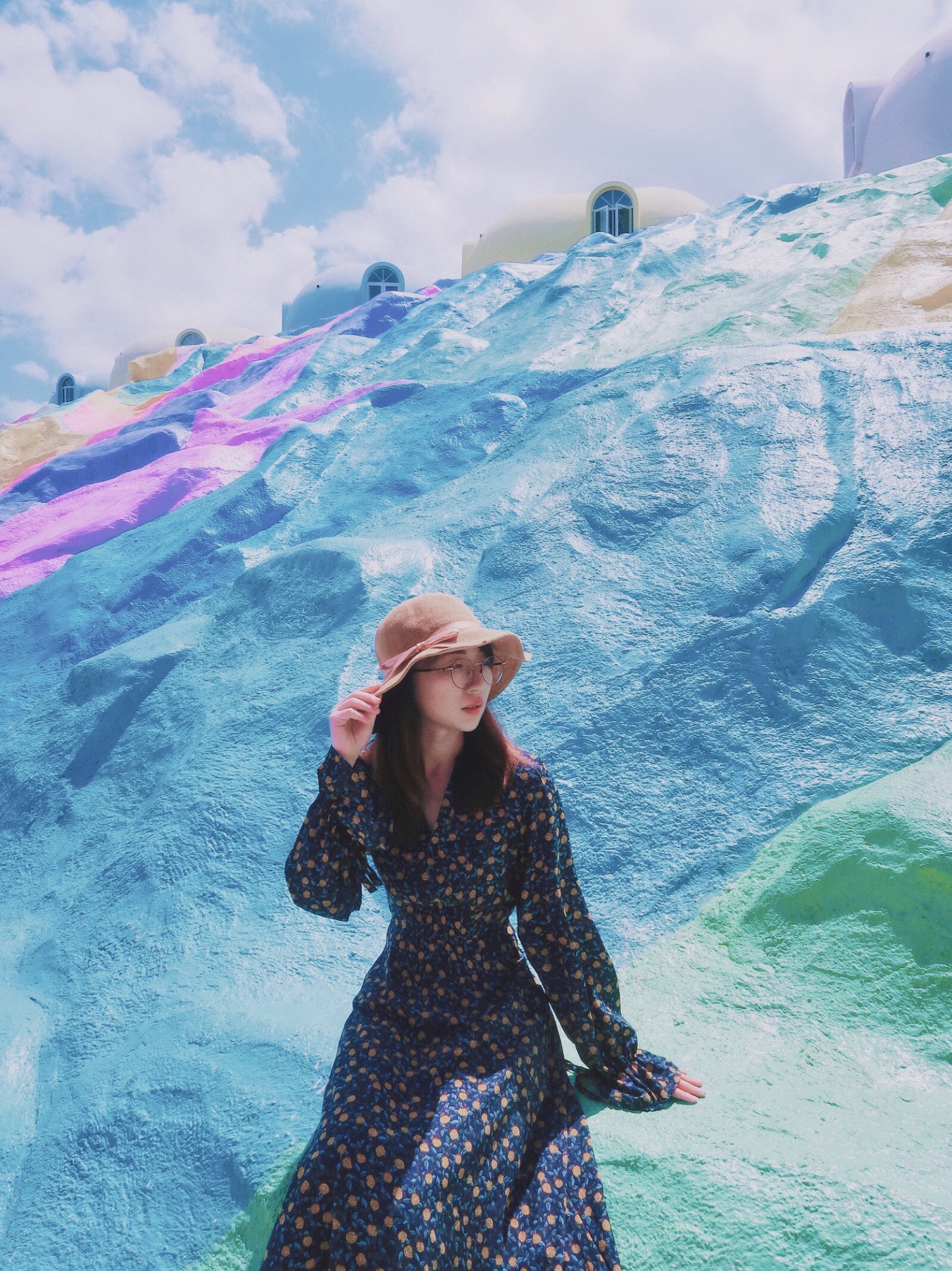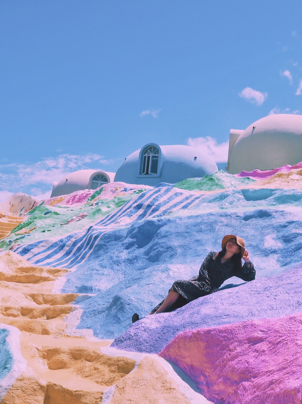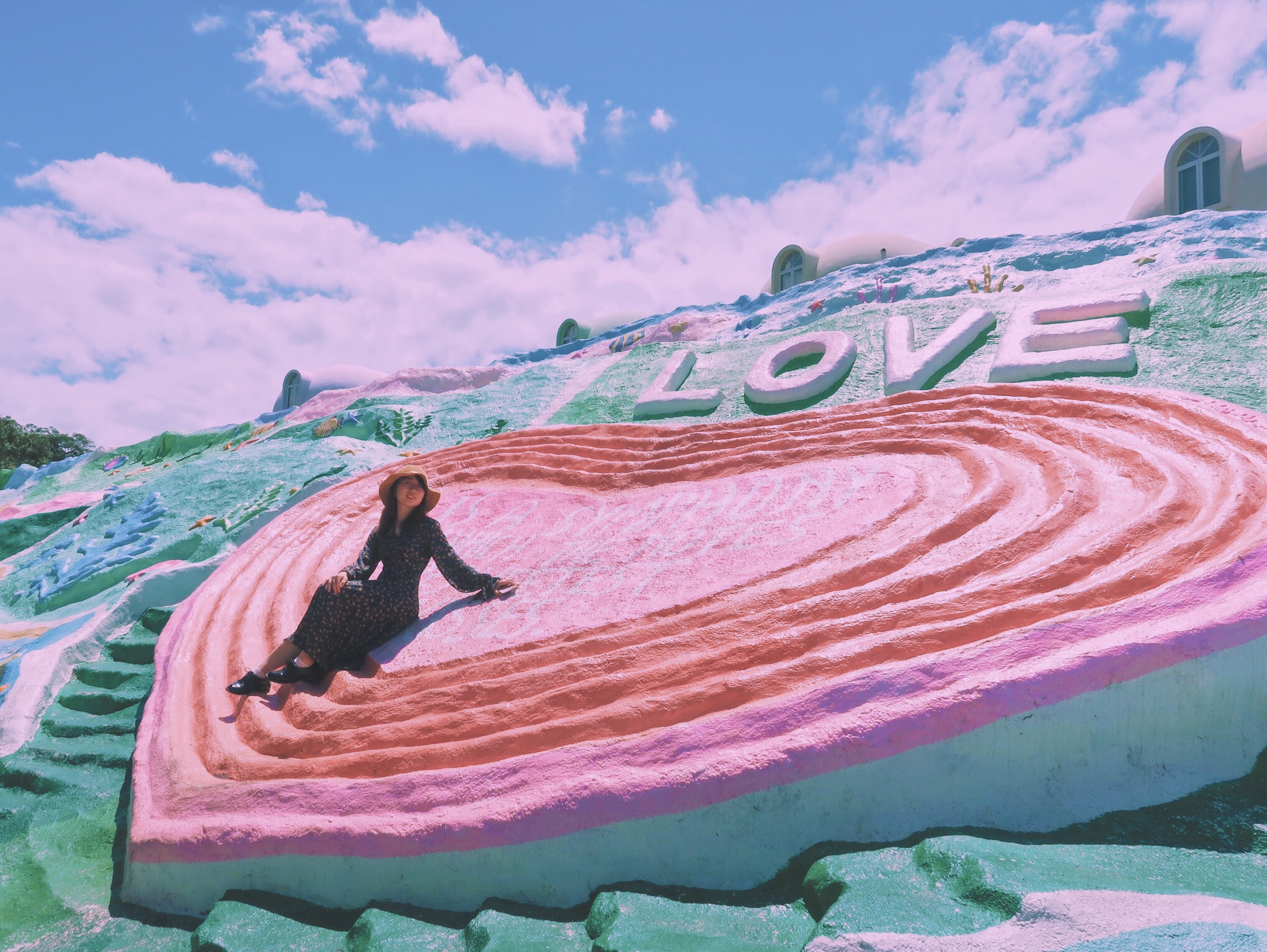 美国的救赎山被旅游杂志《Lonely Planet》列为全美4000处必到景点之一,被称为离天堂最近的地方。它是由一位虔诚的基督徒花费24年时间,独自在南加洛夫利亚州的荒漠里徒手建起了这座色彩斑斓的城堡,山丘上刻满了圣经里歌颂上帝的诗句。漳州火山岛景区里彩虹山的原型就是来自于此,五彩斑斓的山丘,梦幻、明艳。