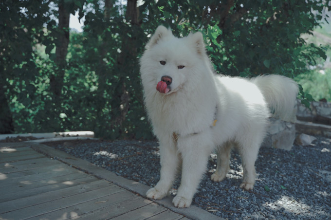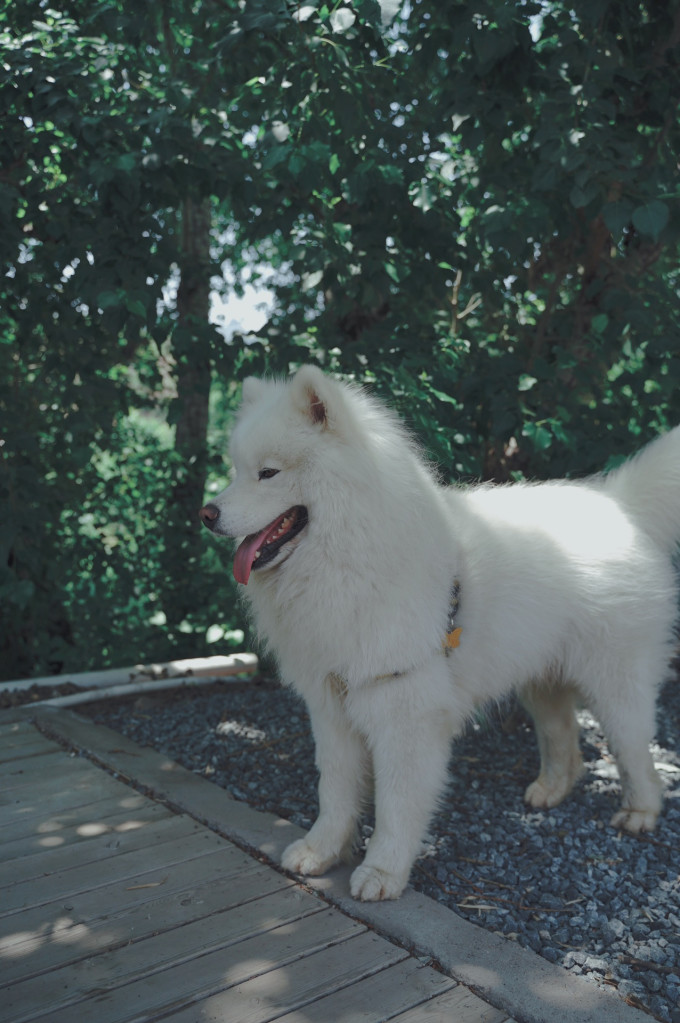 :这里有只叫雪糕的萨摩,2岁,很亲人可爱,脾气很好,全身雪白的毛毛摸起来很治愈!