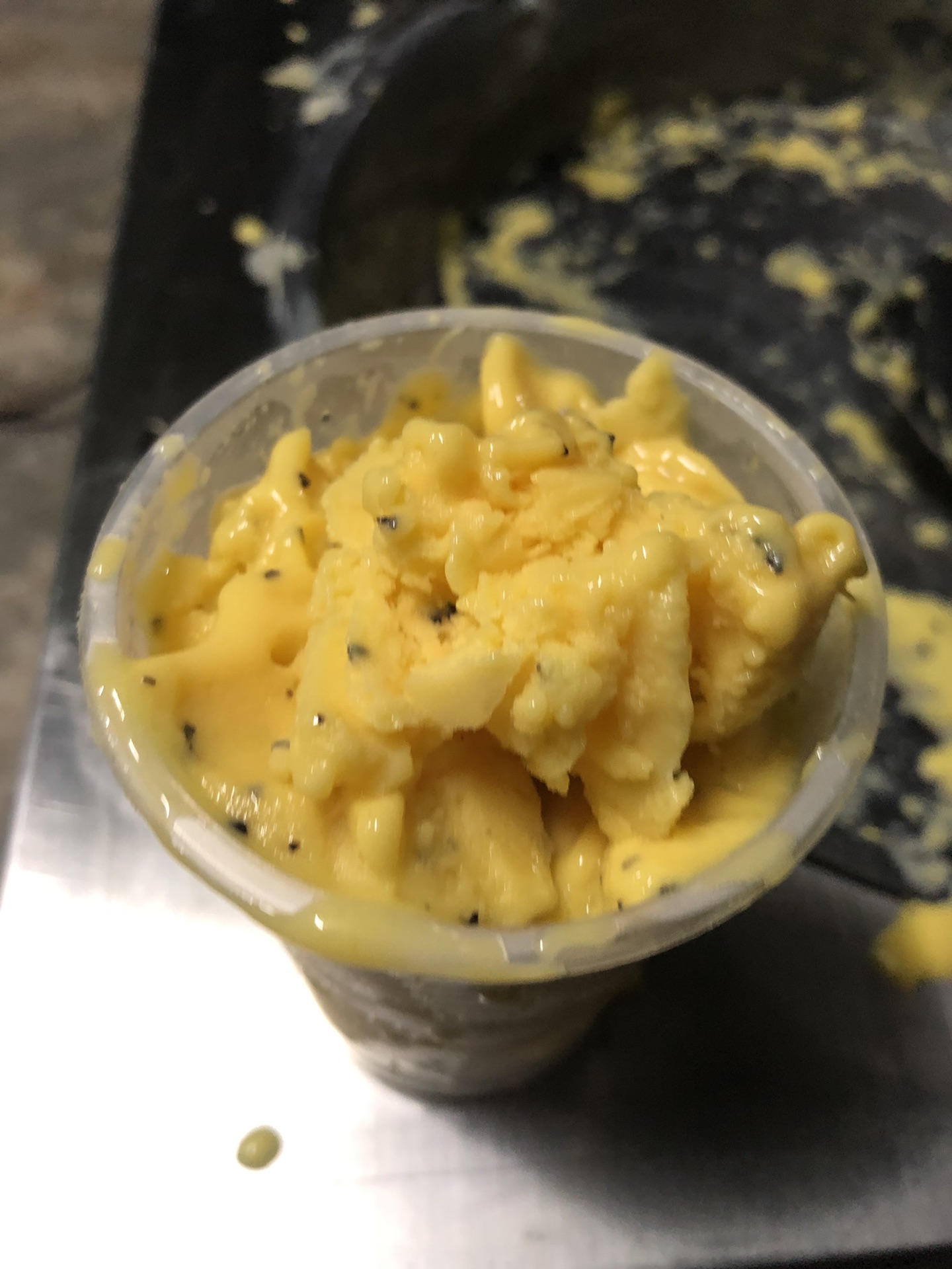 也是南澳一大特色,夏天到海滨路或者环城东路,一路都有哦。炒冰是新鲜水果加牛奶榨成果汁,然后将果汁倒进炒冰机炒到成沙冰状,不比外面的冰沙,炒冰是很细腻的,只会在出锅时是加入一些椰子块和葡萄干