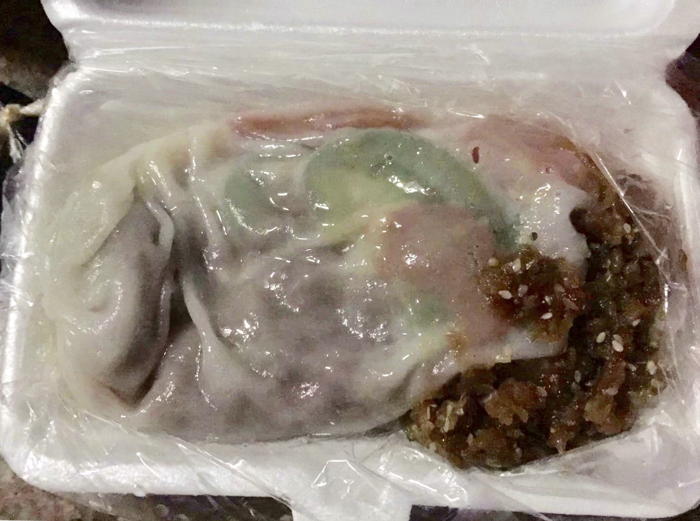 个人推荐后宅金龙路和龙地的这两家肠粉,猪肉10元/条,牛肉15元/条,肠粉里面有:猪肉(牛肉)、生菜、豆芽、生蚝、肉饼,喜欢皮厚的可选择第一家,喜欢皮薄的可以选择第二家,酱有有咸甜酱和特制酱油可选