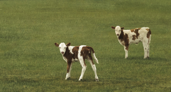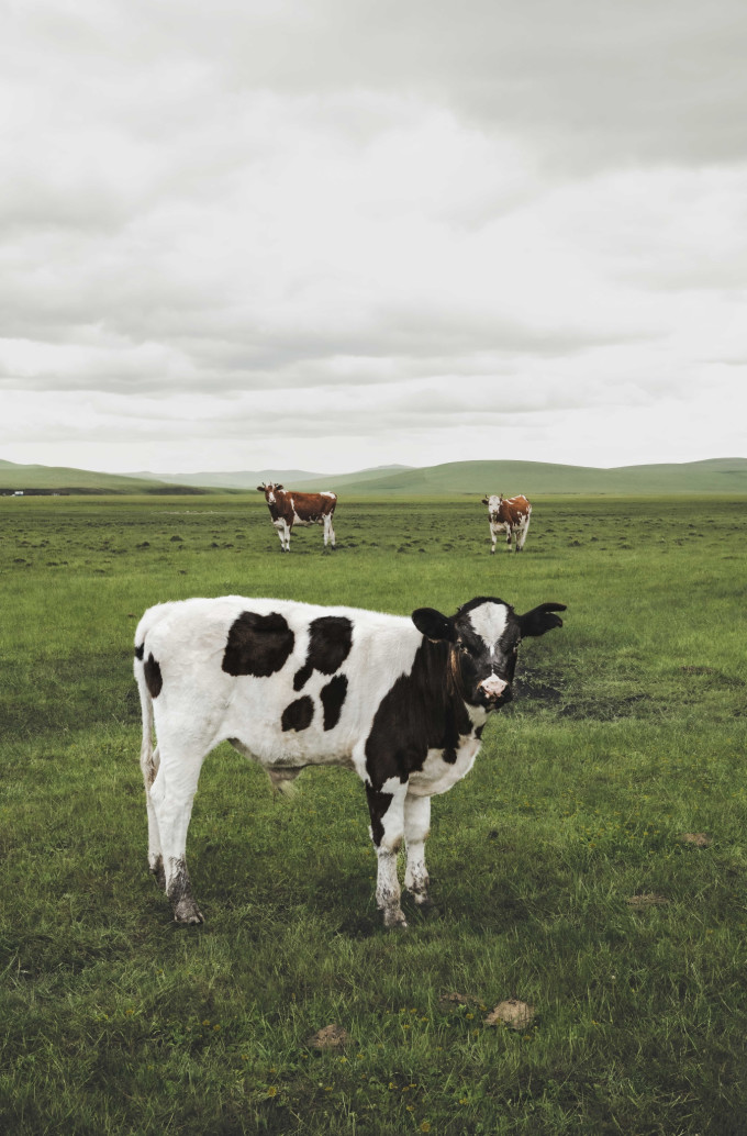 行至草原深处,晴转阴雨,牛群逐渐显现: