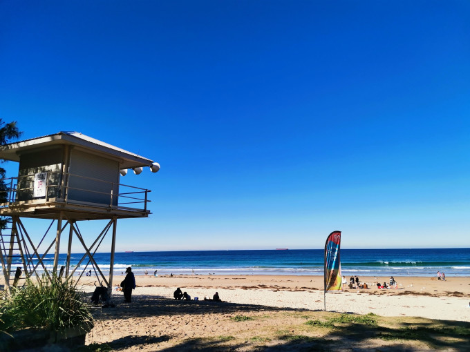 结束了休闲的有氧徒步行程后,我们驱车前往洞穴海滩(caves beach)。海滩的入口处有一家鱼薯店,我们点好午餐,在沙滩边的桌椅上就餐。海滩全长约2公里,清澈的海水,细软的沙滩,嘻闹的孩童,都能让人一扫阴霾。若是赶上退潮的时候,就能看到这里独有的岩洞。饭后我们沿着一排岩石路向岩洞走去,岩石上随处可见青苔和小海螺。由于正值涨潮,我们没能更深入探索,岩洞内的秘密也给我们留下无限遐想。