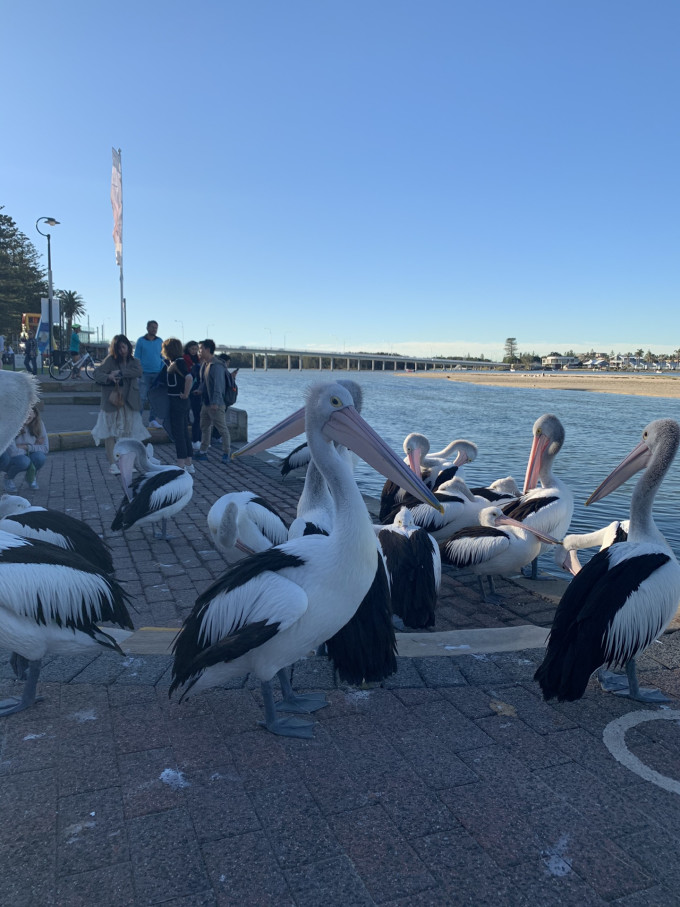 下一站,我们前往鹈鹕之都--The Entrance看鹈鹕。 每天下午三点半都会有喂鹈鹕表演,这里还有不少娱乐设施,摩天轮滑滑梯等,供儿童玩乐。因此除了吸引不少游客前来观赏,也是很多家庭周末休闲放松的好去处。由於受疫情影响喂鹈鹕表演目前暫停了,不过遇上一位工作人员小规模投喂,我们还是很幸运的看到鹈鹕抢食。可能是伙食太好了,每只鹈鹕都圆滚滚,憨态可掬。