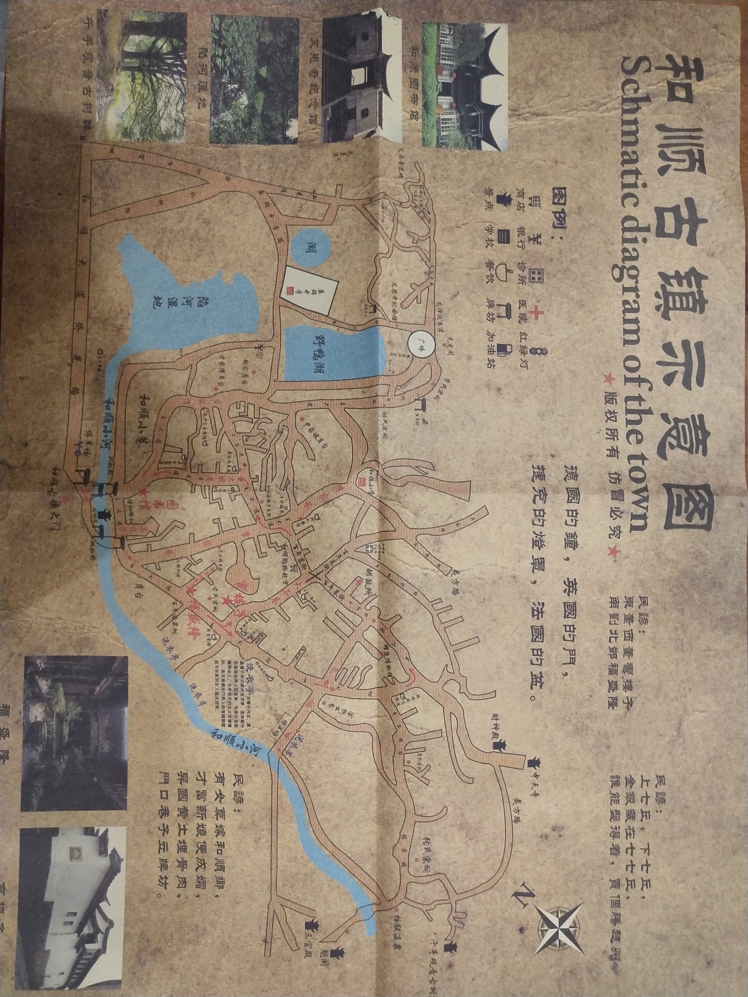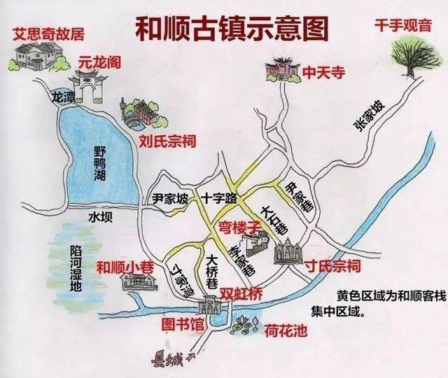 大家可以把古镇一分为二的溜达,街道图参考