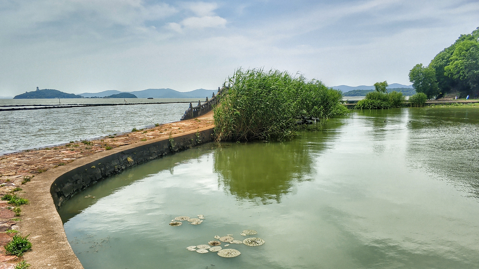 长长的堤岸从水中穿过,