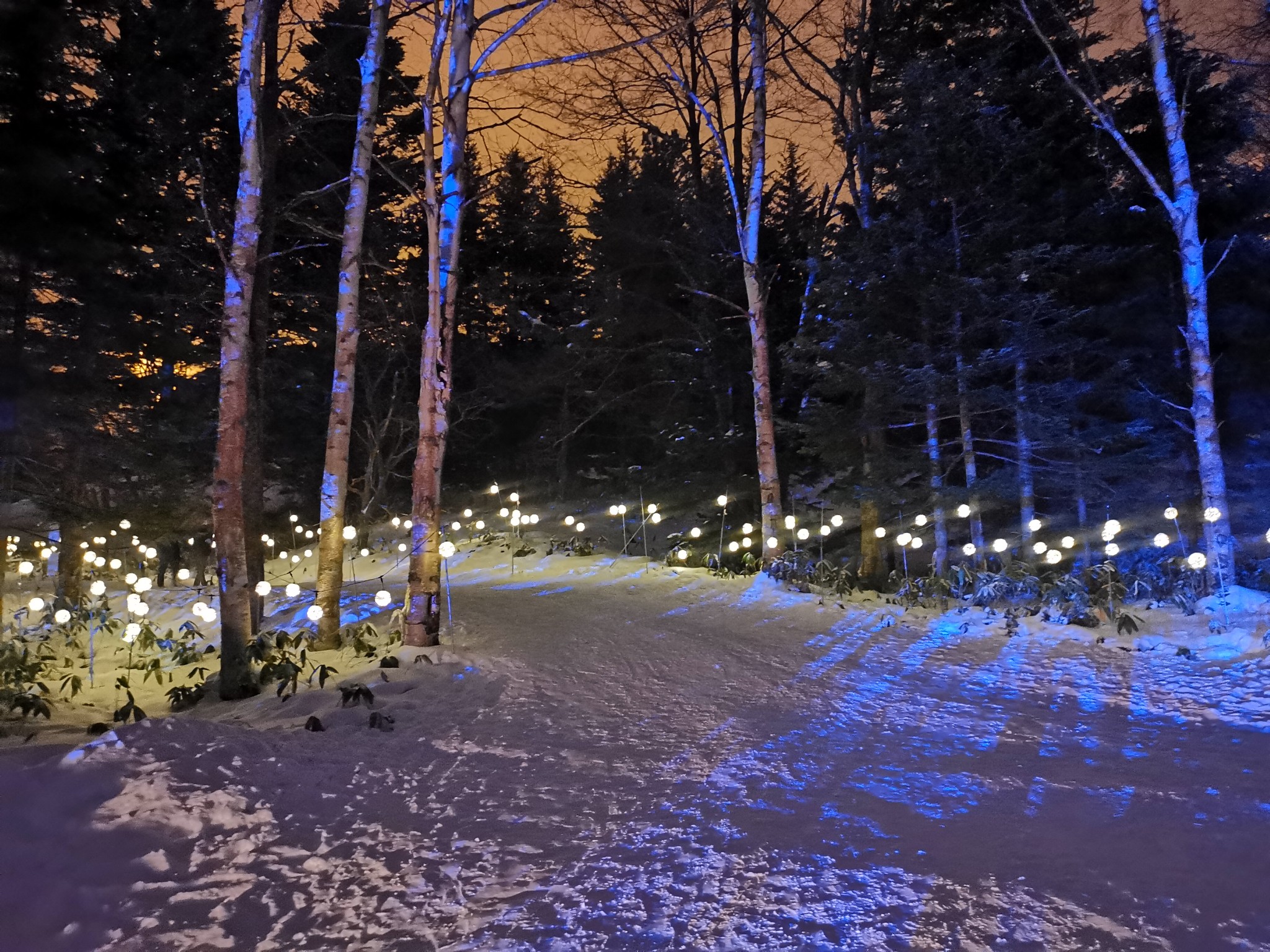 收拾好行李,我们先走室内连廊去了萤火虫之街吃午饭,汤咖喱味道还不错,有一股细微的烧烤糊味儿,是我喜欢的。之后我们搭乘度假村里的免费巴士去了微笑海滩,泡了木森之汤。寒冬夜晚,天上飘着雪,泡着热气腾腾的露天温泉,趴在池边看着对面小山坡上成片的雪松。闭上眼,感受轻盈的雪花缓缓落下,在被烫红的背上一点点融化。这是此次北海道之旅留给我最美好的回忆。