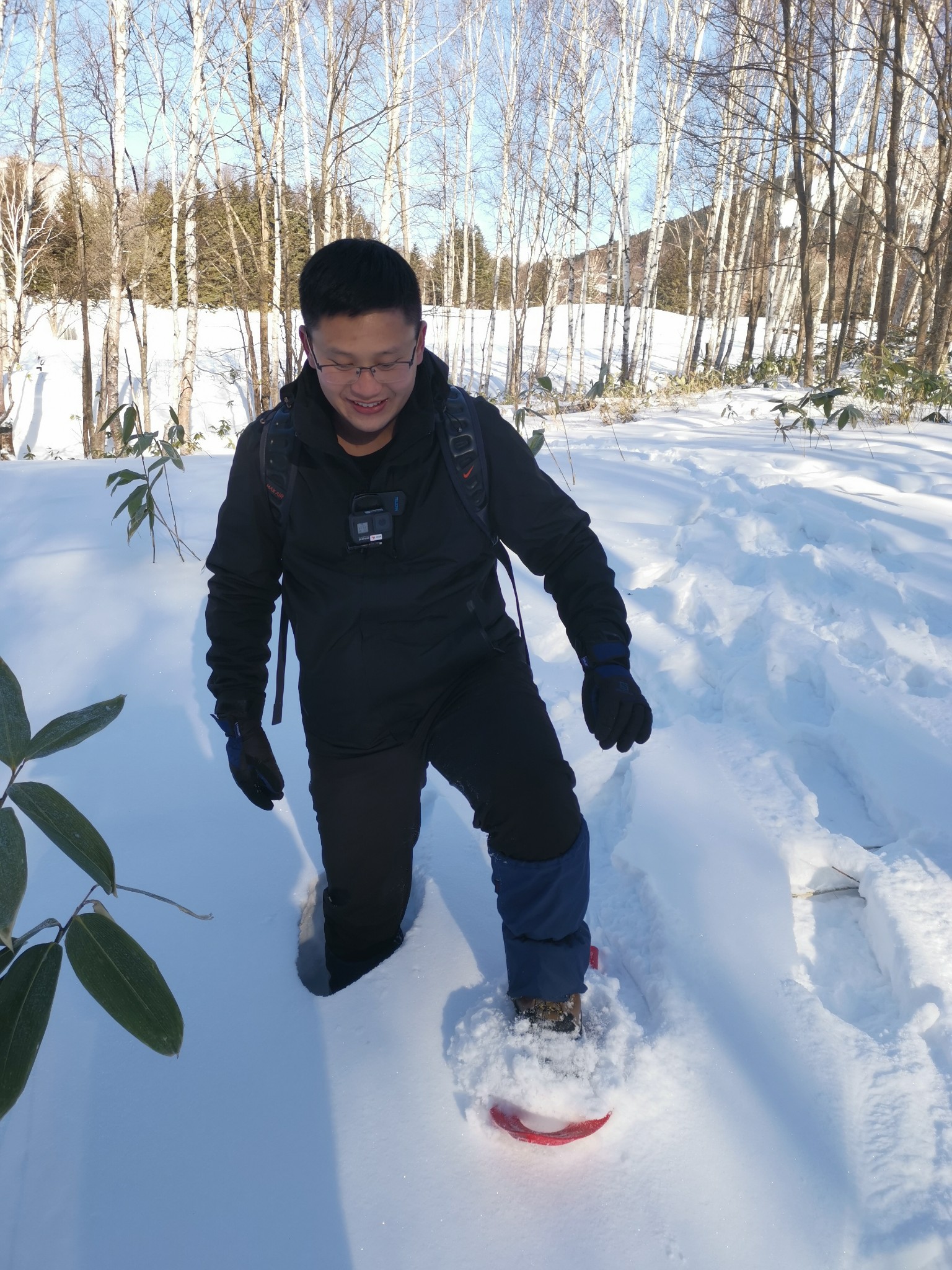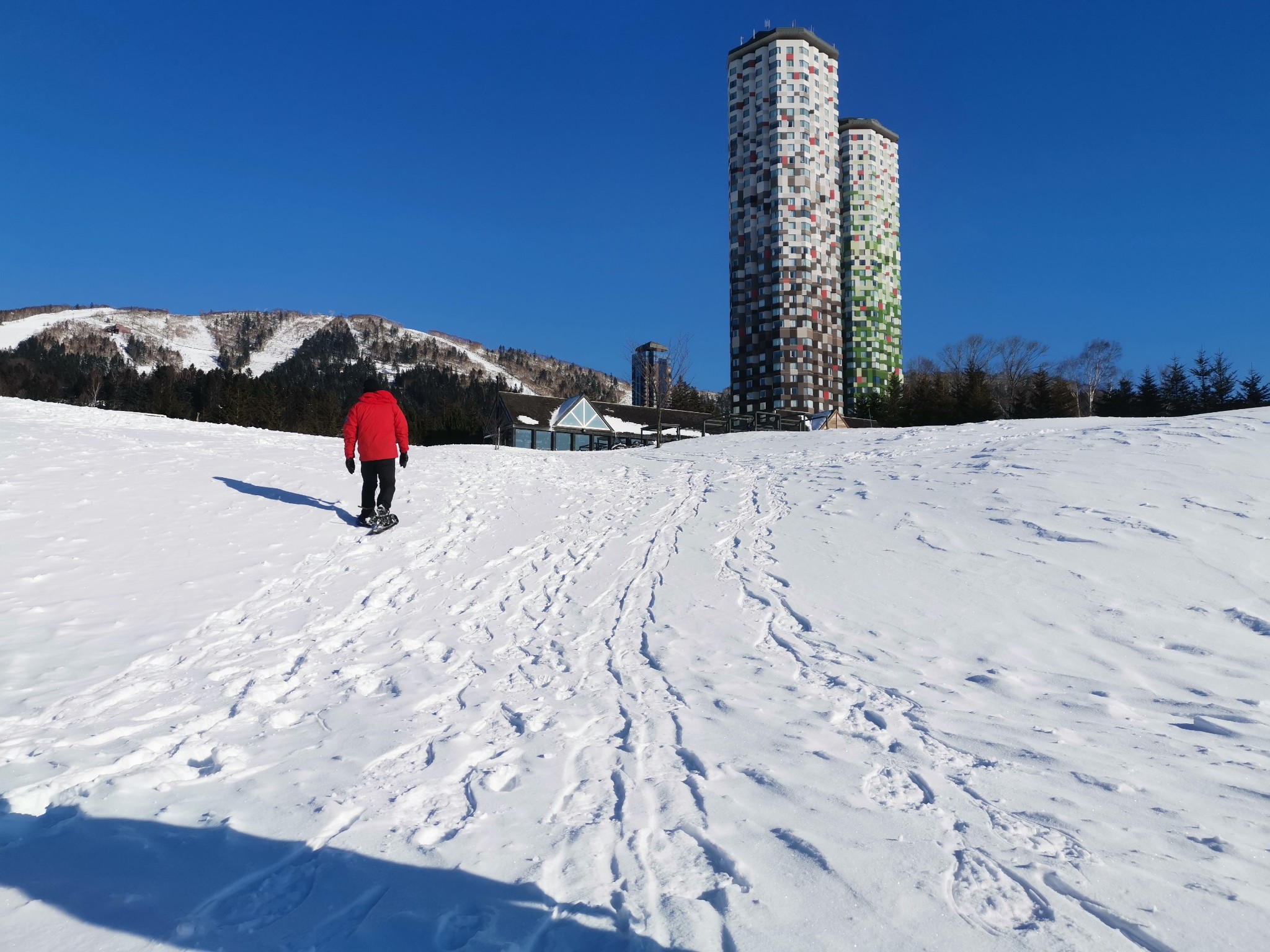 前一天我们在活动中心预约了两个人半小时的雪地徒步。这是我们第一次参加“徒步”,很兴奋。原本想选一个时间长一点的徒步,可是因为上午十点半就要乘车去旭川,只好选择了半小时的活动。一位当地向导带着我们两个穿上雪鞋,穿树林,过小河,辨认各种动物的脚印(想要看到野生动物要清晨四五点钟我们起得太晚所以只能看看它们留下的脚印)。半个小时的行程很开心,希望以后有机会能来个真正的徒步旅行~~