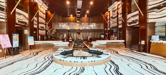 中午11点半司机将我们送到蓬莱饭店,这第一天就留一张酒店大堂照吧