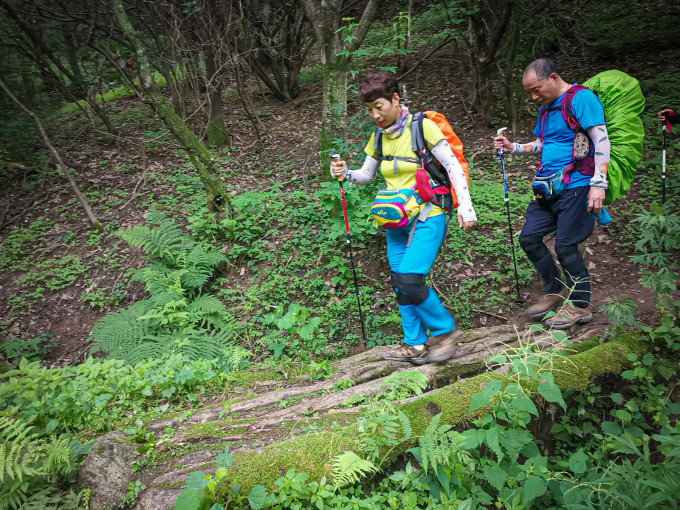 这里的练驴坡特点是比较陡,来回Z字型走,必须有登山杖作支撑。相对我们是下坡,还好走些,如果从高冠反穿大寺,难度就比较大了。