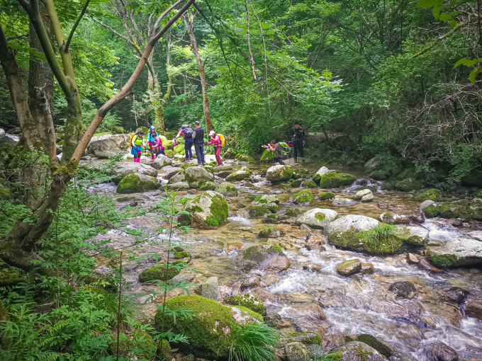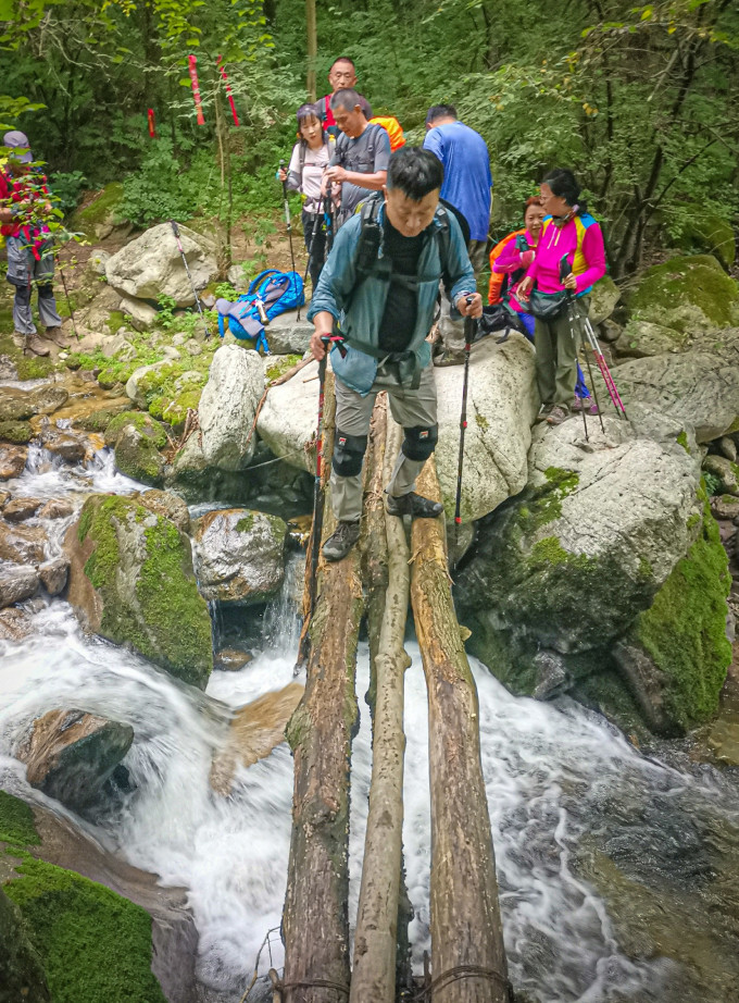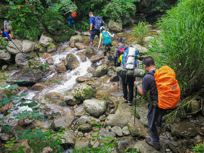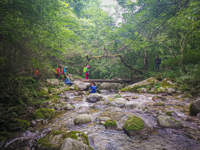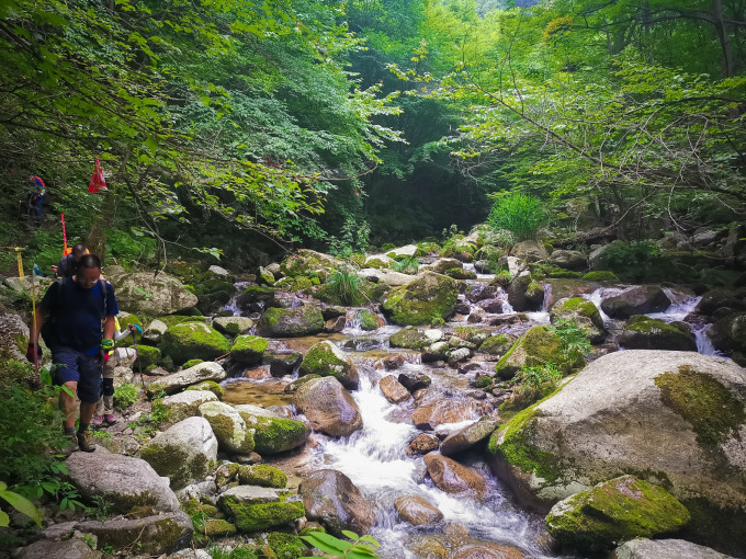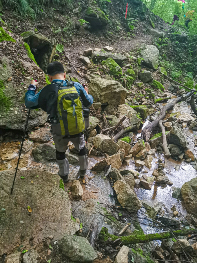 从大寺三组走到二组穿河流还不太多,再往下或穿河流或沿着河边走,要特注意脚下,防止滑倒。