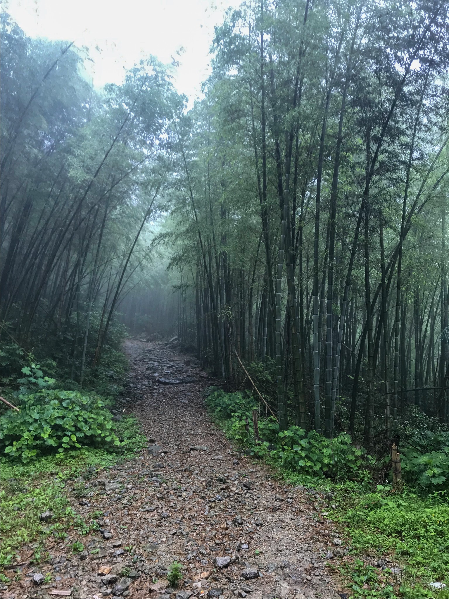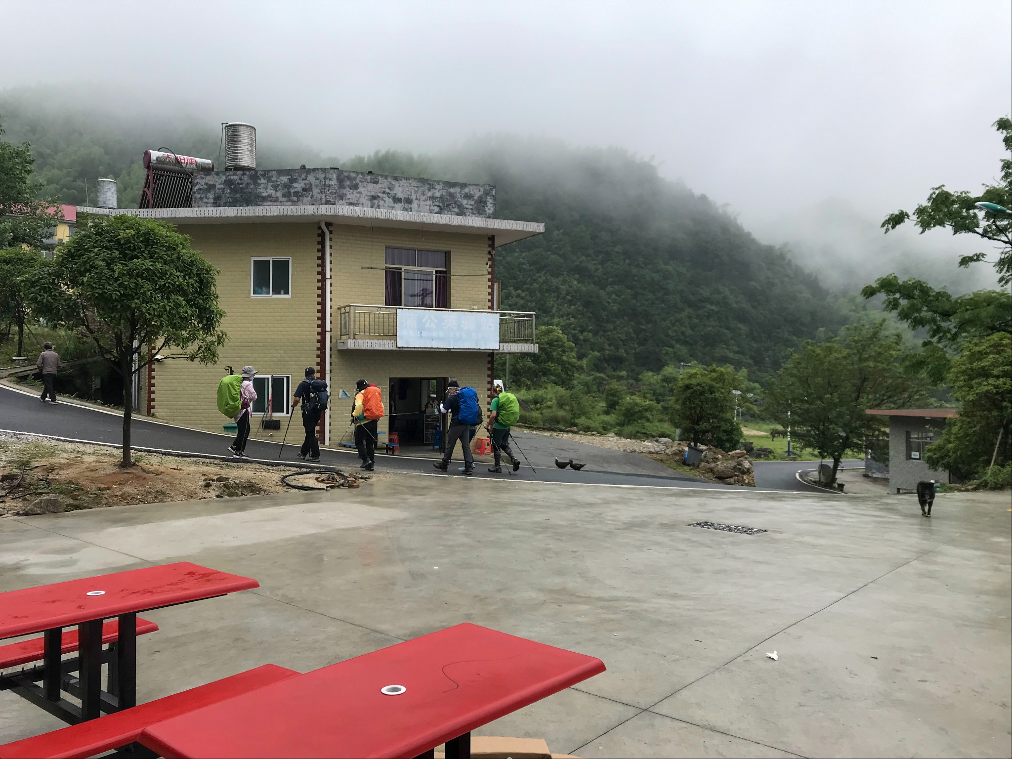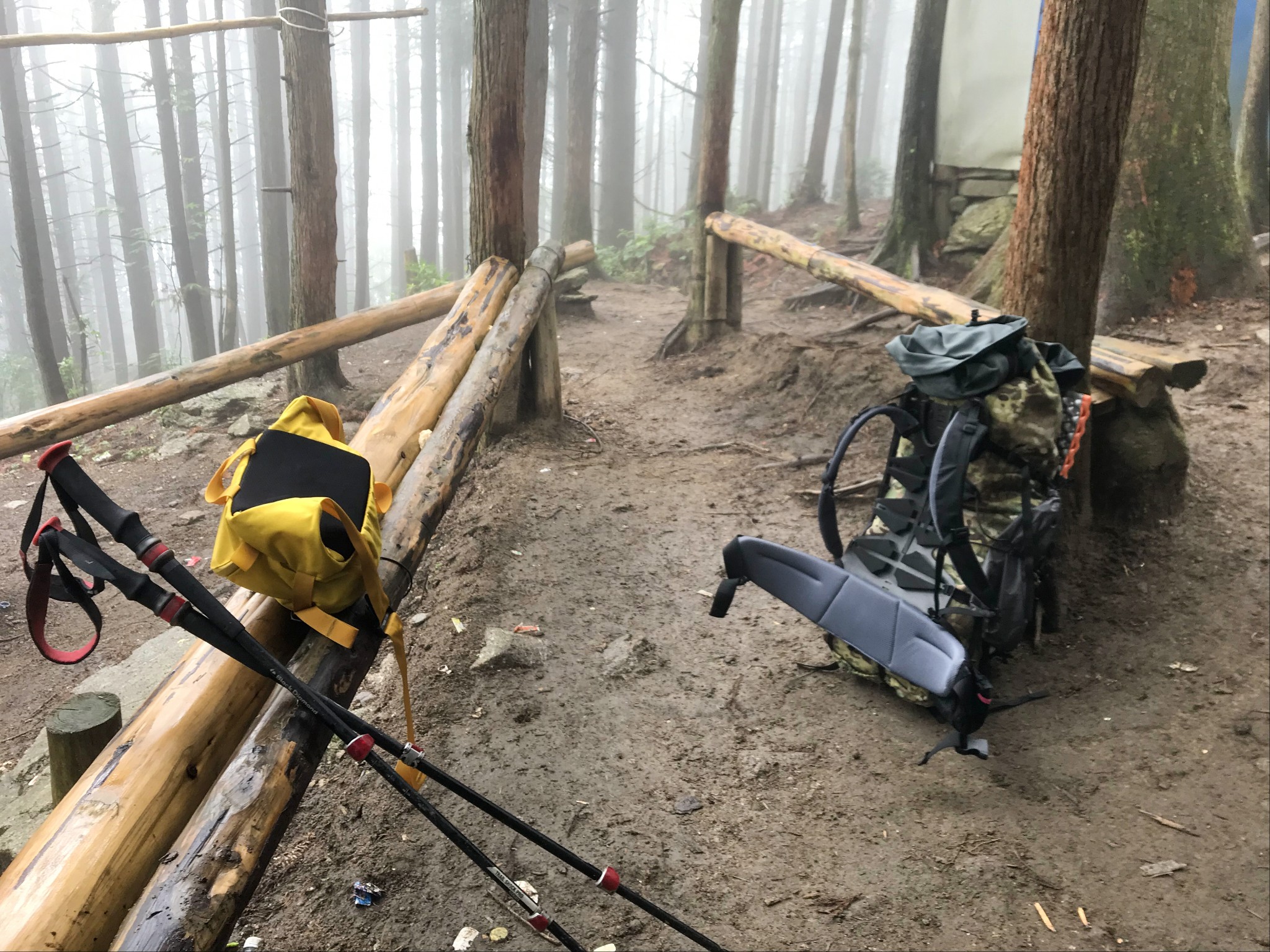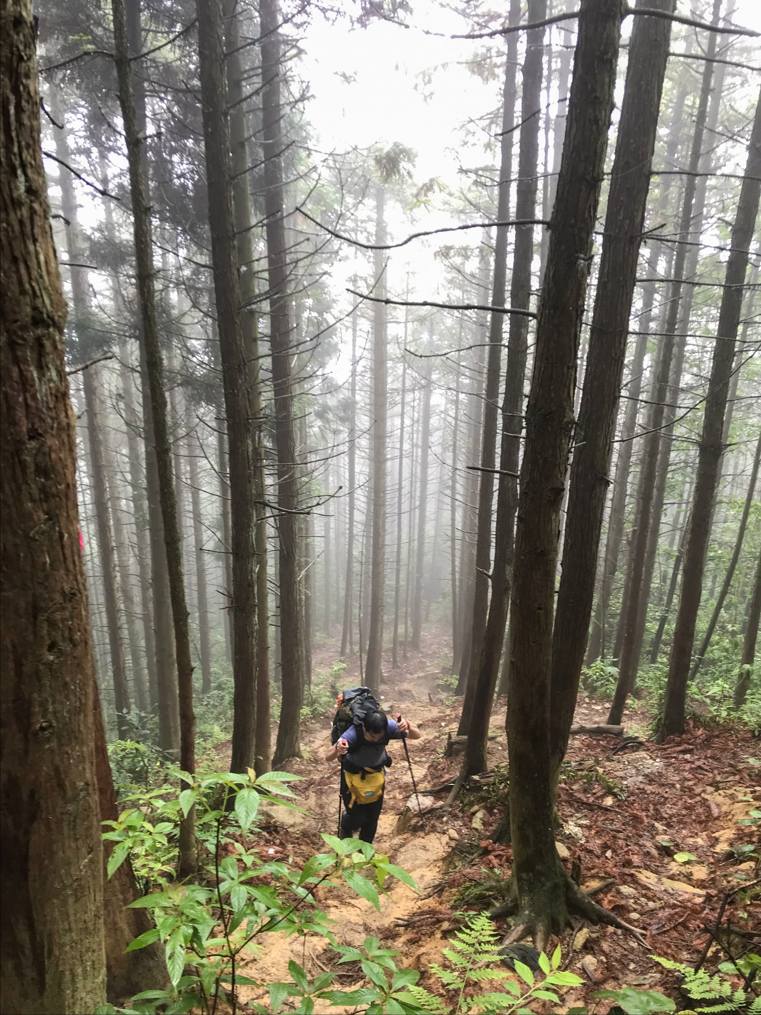 当我们到达沈子村后就已经下起了小雨,把装备整理了下,又采购了些食物就出发了,因为坐飞机登山杖要托运我就没带,在村子里的商店两块钱买了根细竹竿,一路上用的还挺顺手。