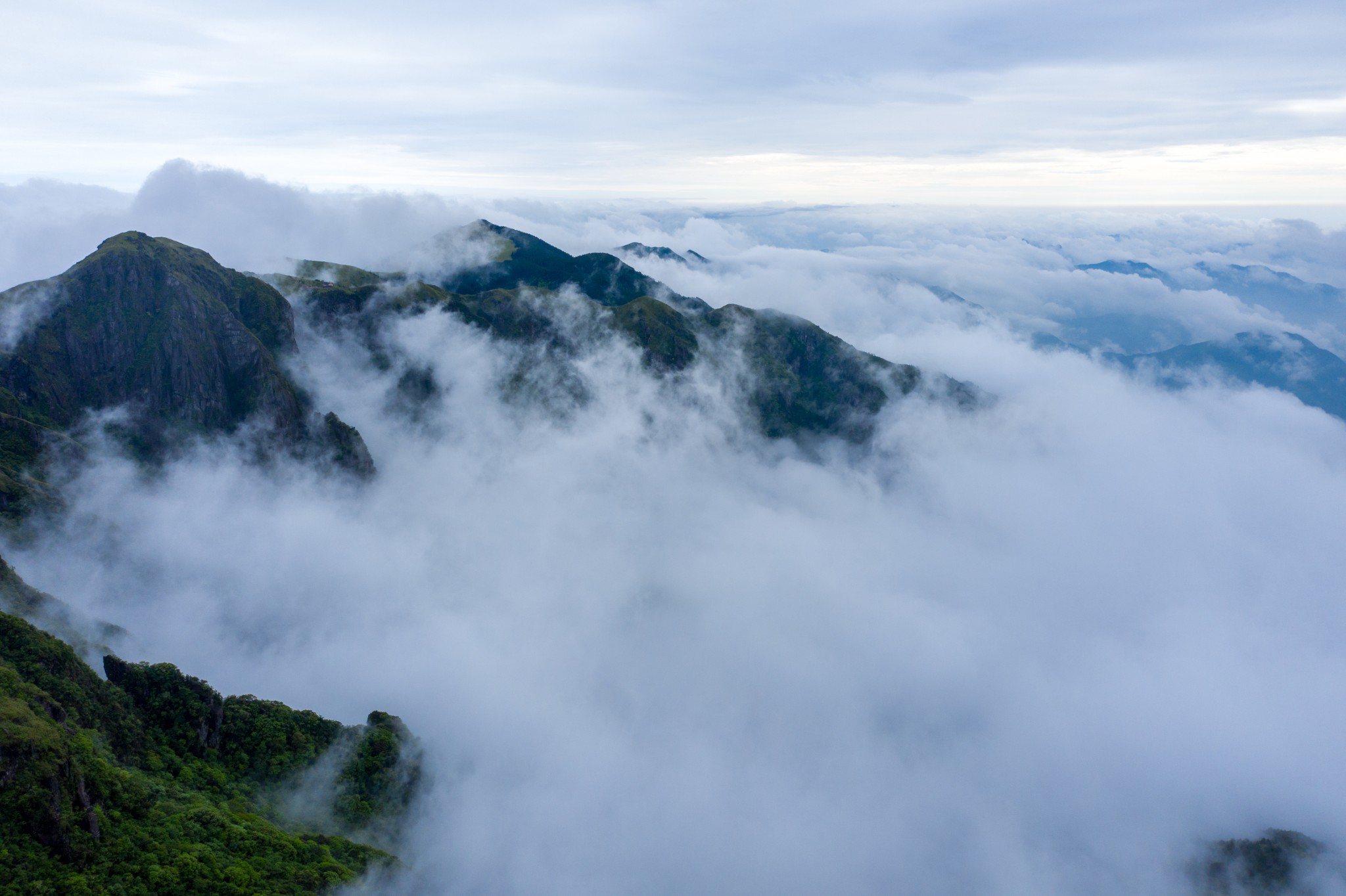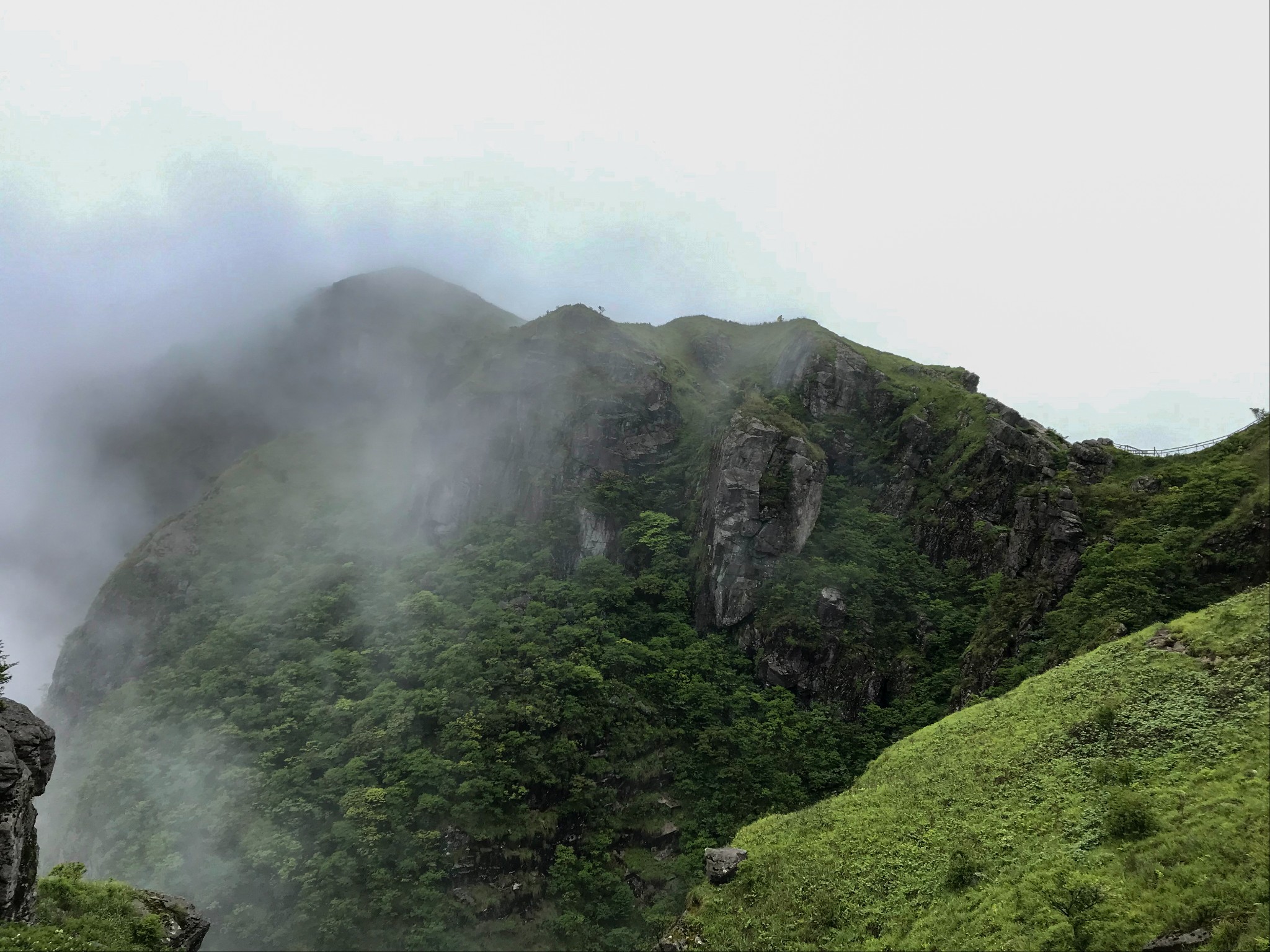 下午两点多到达铁蹄峰附近,刚好雨也停了,这才开始感受到了武功山的美,山间云雾缭绕,云海翻滚。