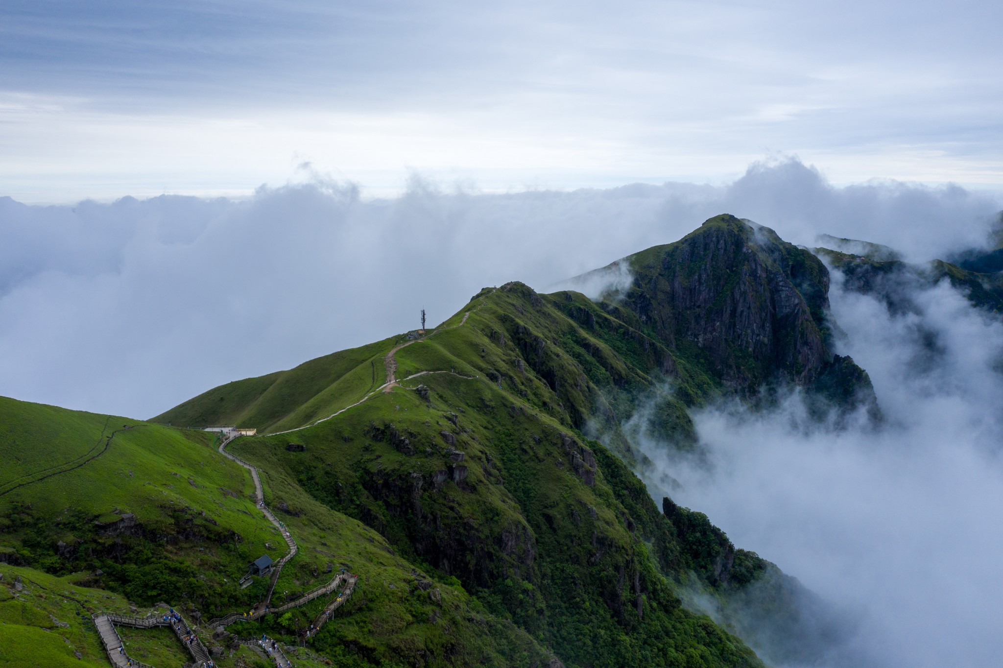 下午4点半左右顺利登顶,进入景区后就都是木栈道了,好走的很。