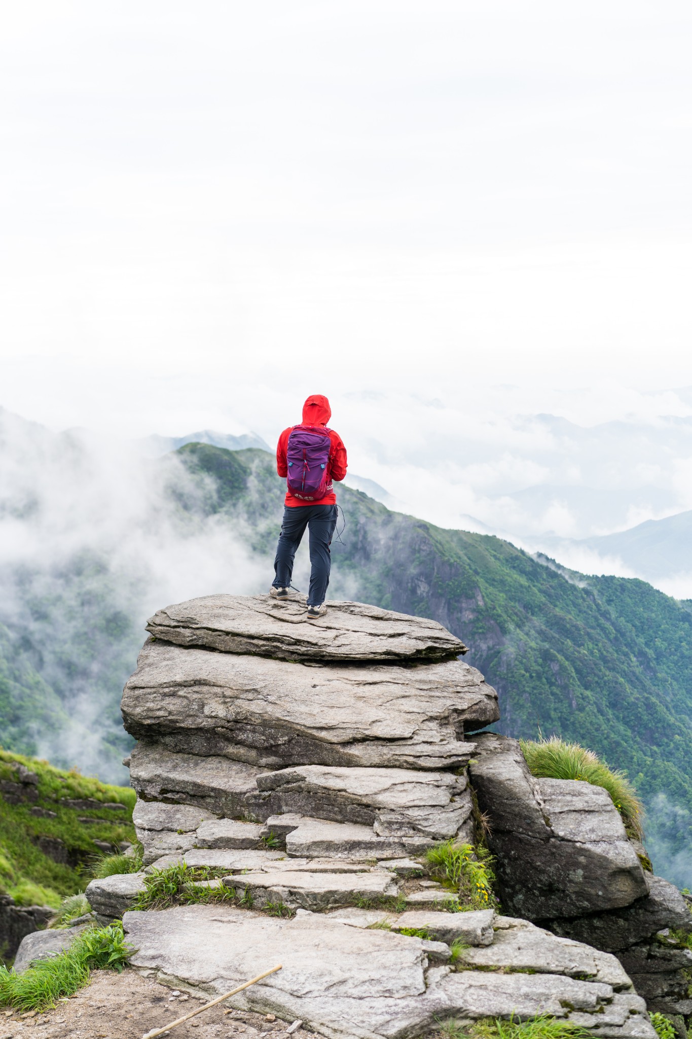 站在金顶上感觉也没啥意思,周围也起雾了,啥也看不到,拍了些照片就准备往客栈走,想想我十几天前站在5588的山顶,现在又站在1918的山顶,相差三千多米。